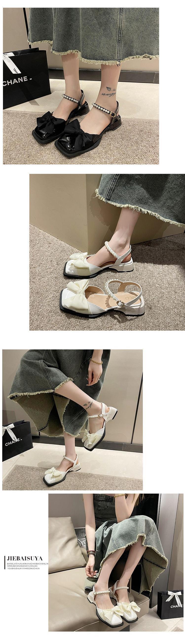 바오터우 리본 샌들 여성용 2025 여름 신상 패션 다용도 레트로 두꺼운 굽 미끄럼 방지 메리제인 가죽 신발스토어 가기