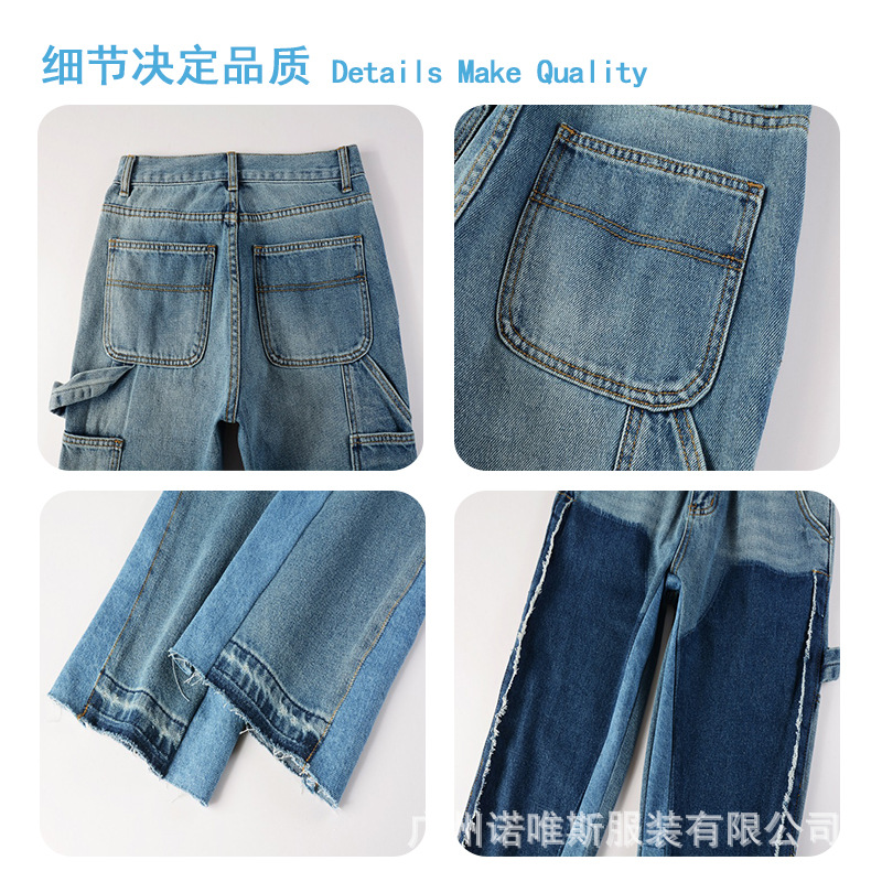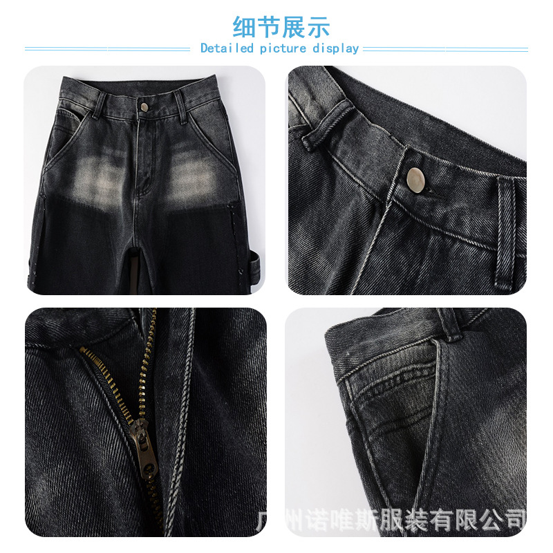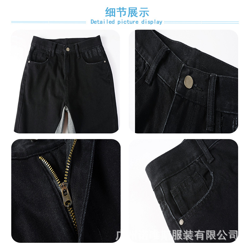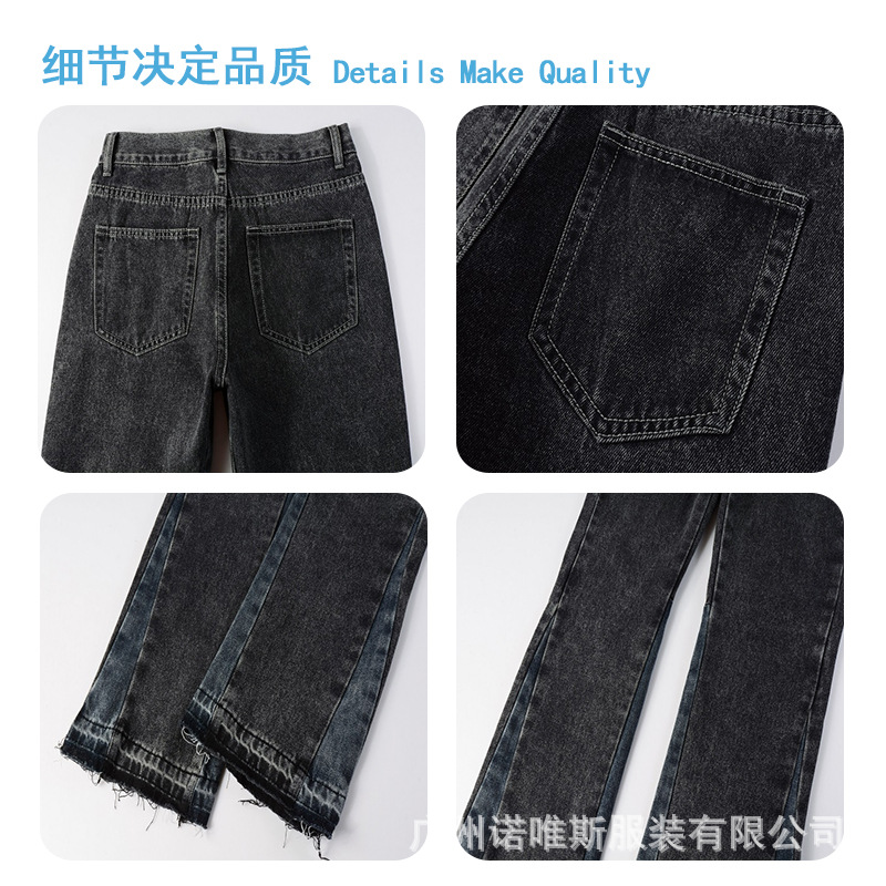 미국식 크로스보더 마이크로 플레어 진 트렌디한 배색 플레어 팬츠 남성용 하이엔드 패션 캐주얼 고급스러운 남성 플레어 팬츠스토어 가기