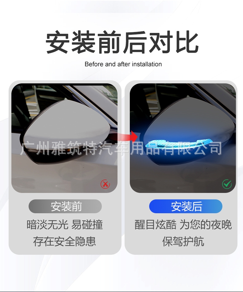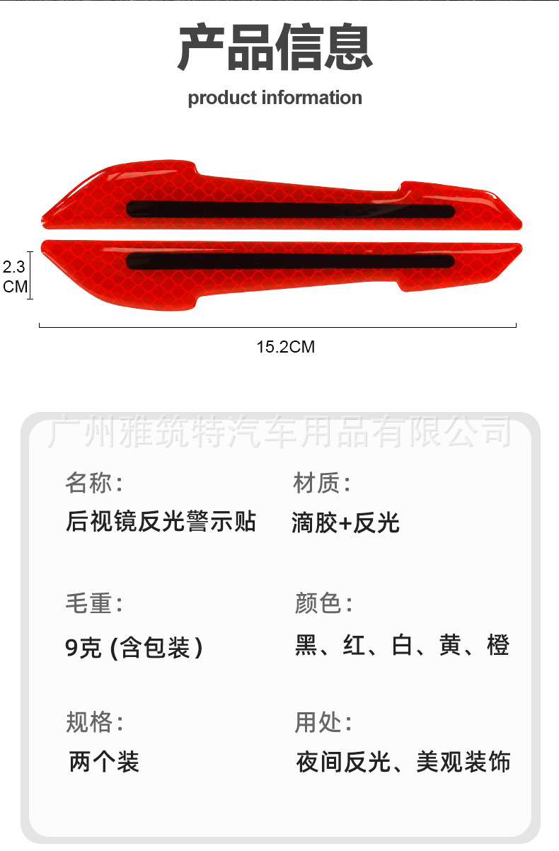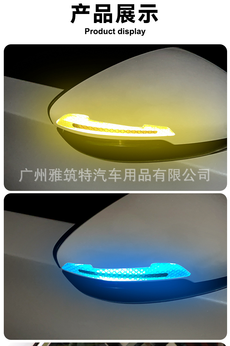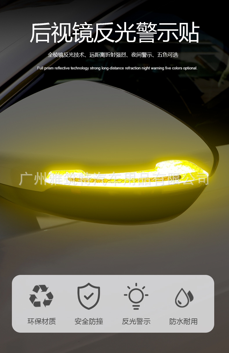 자동차 백미러 반사 스티커 안전 경고 문 충돌 방지 스트립 방수 내마모성 바디 펜더 경고 스티커