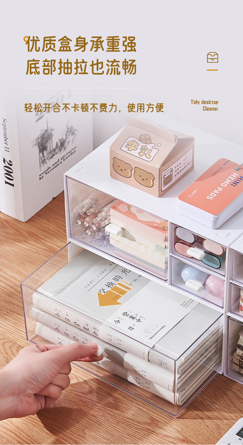 사무실 책상 수납함 투명 서랍형 화장품 문구류 수납함 학생 책상 간이 수납 수납함