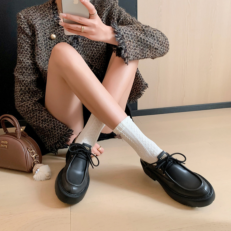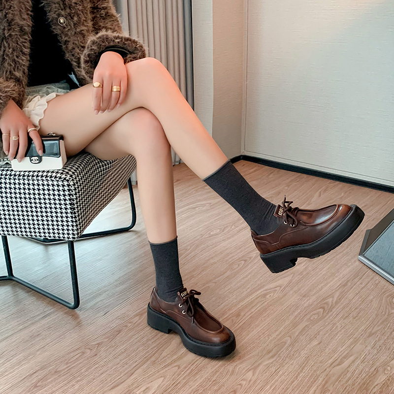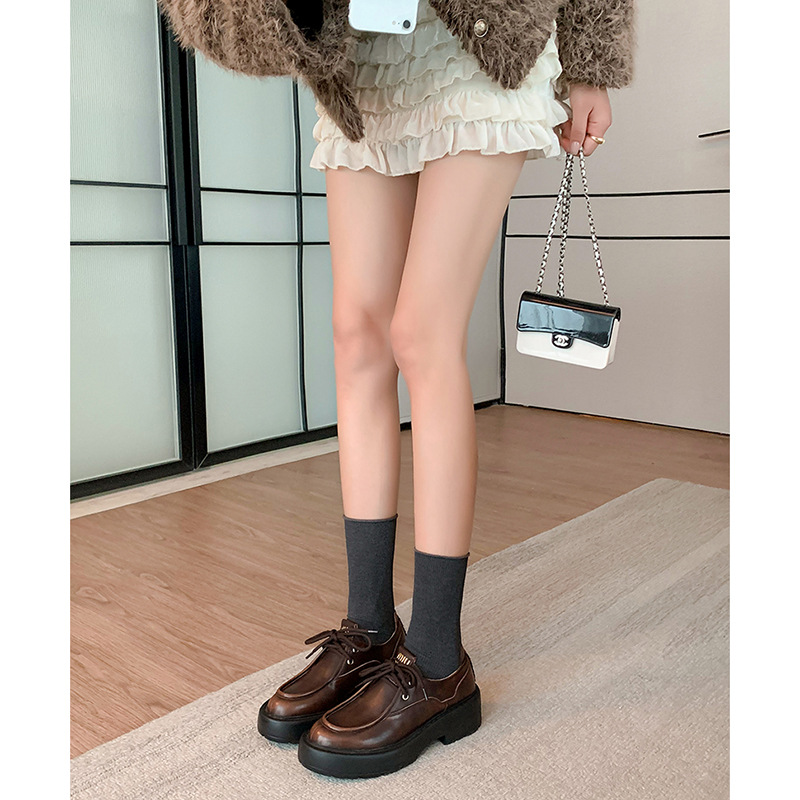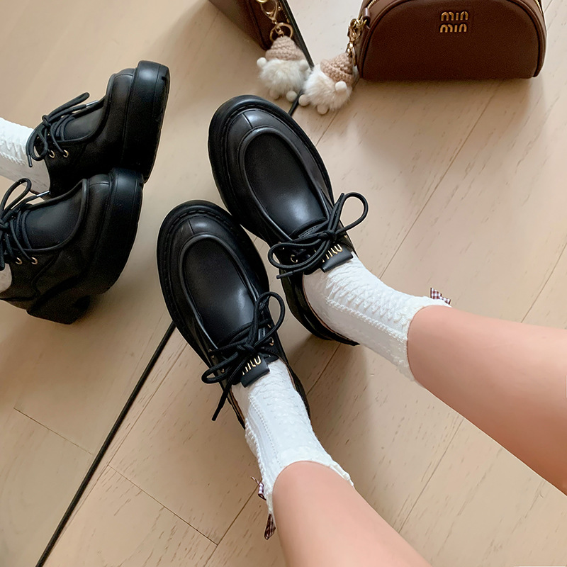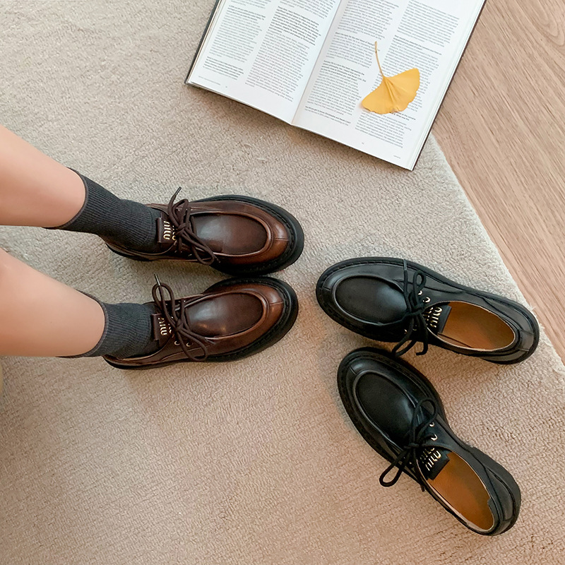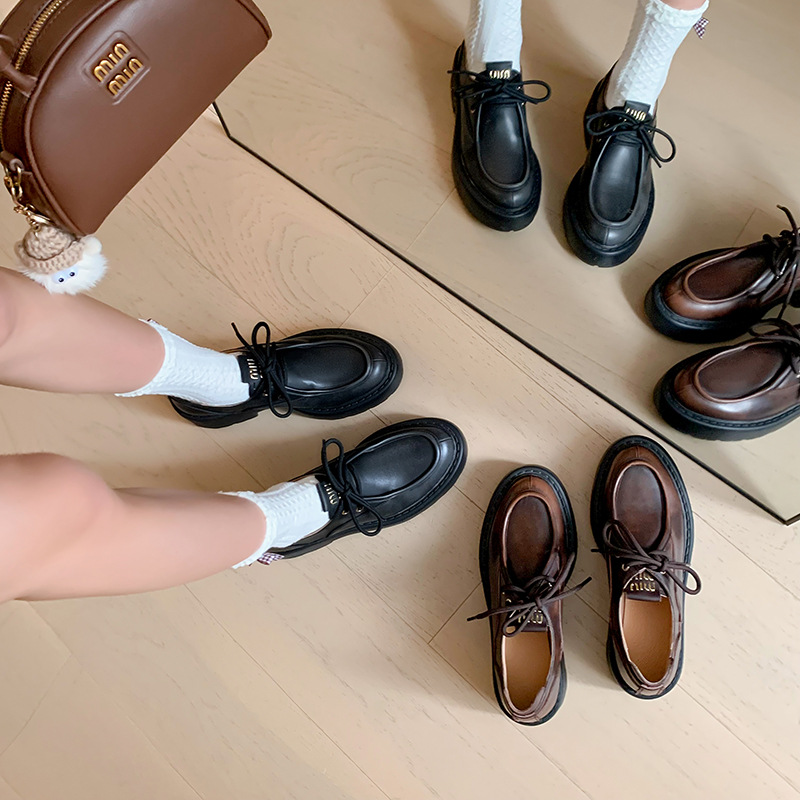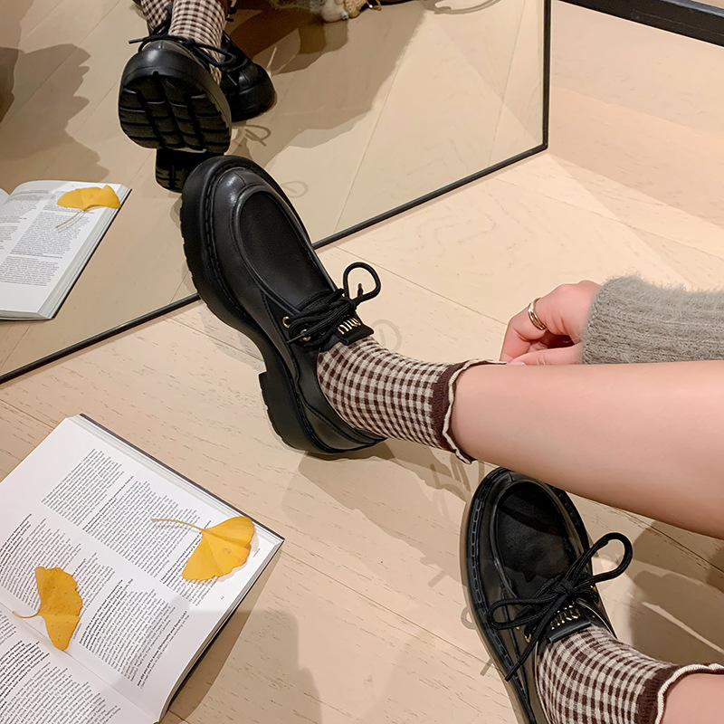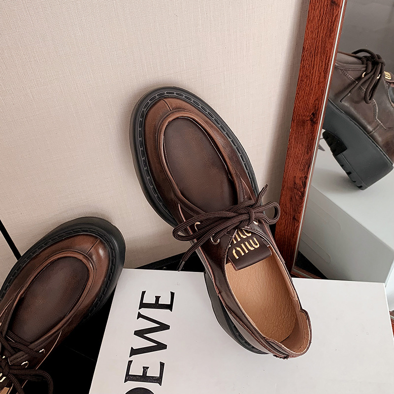 새로운 빈티지 컬러 광택 모리 스타일 올 매치 로퍼 두꺼운 일본 스타일 대학 작은 가죽 신발 하이힐 여성 컬러 광택 여성 신발스토어 가기