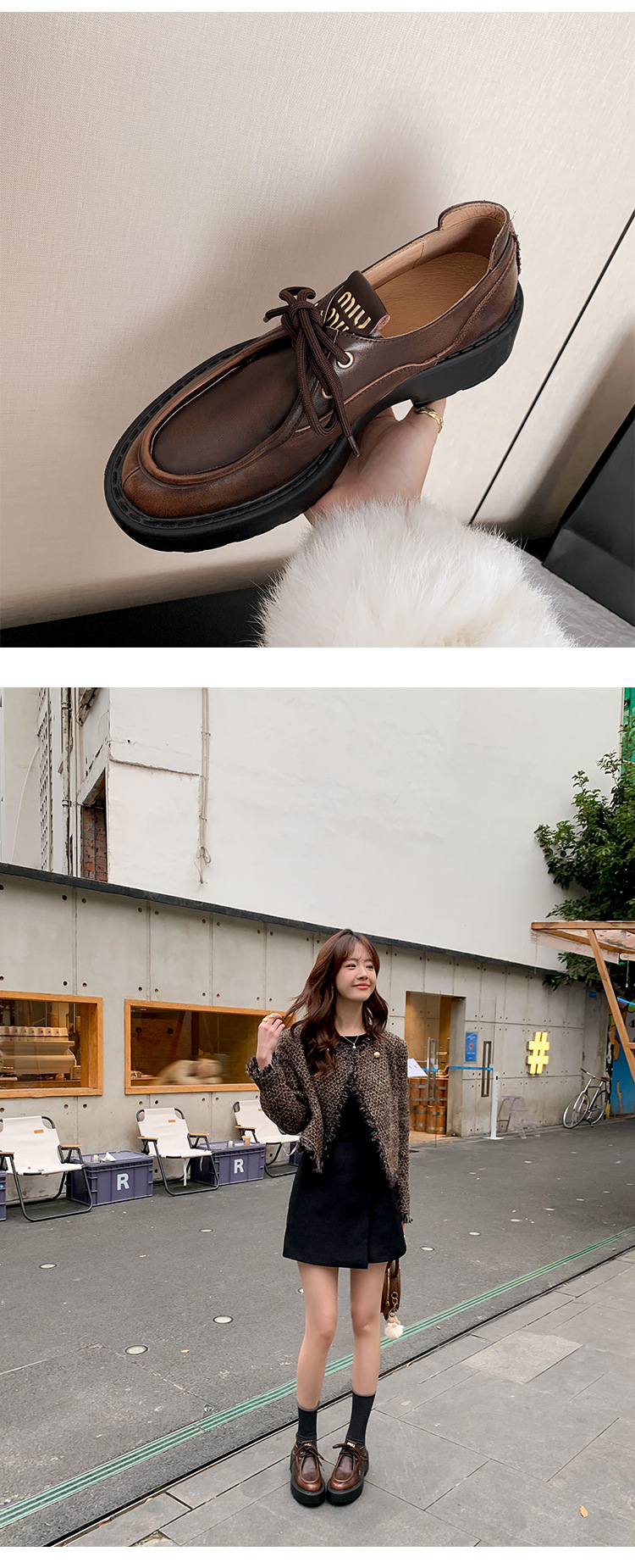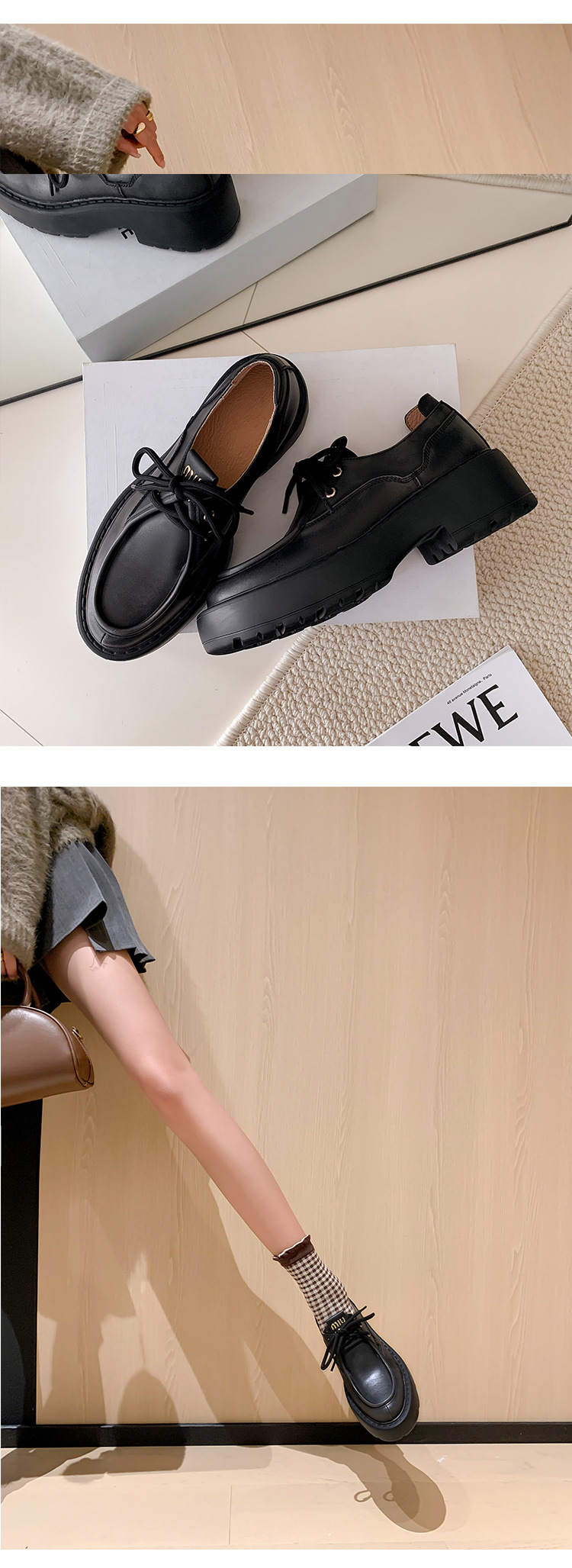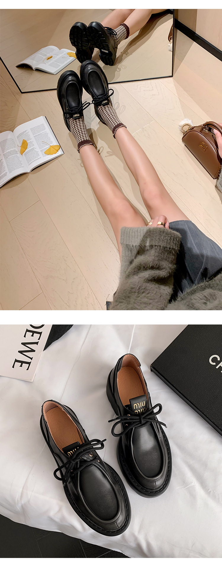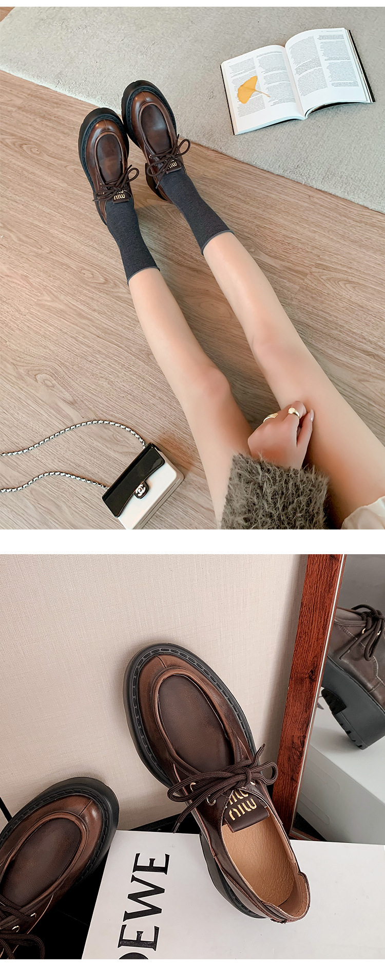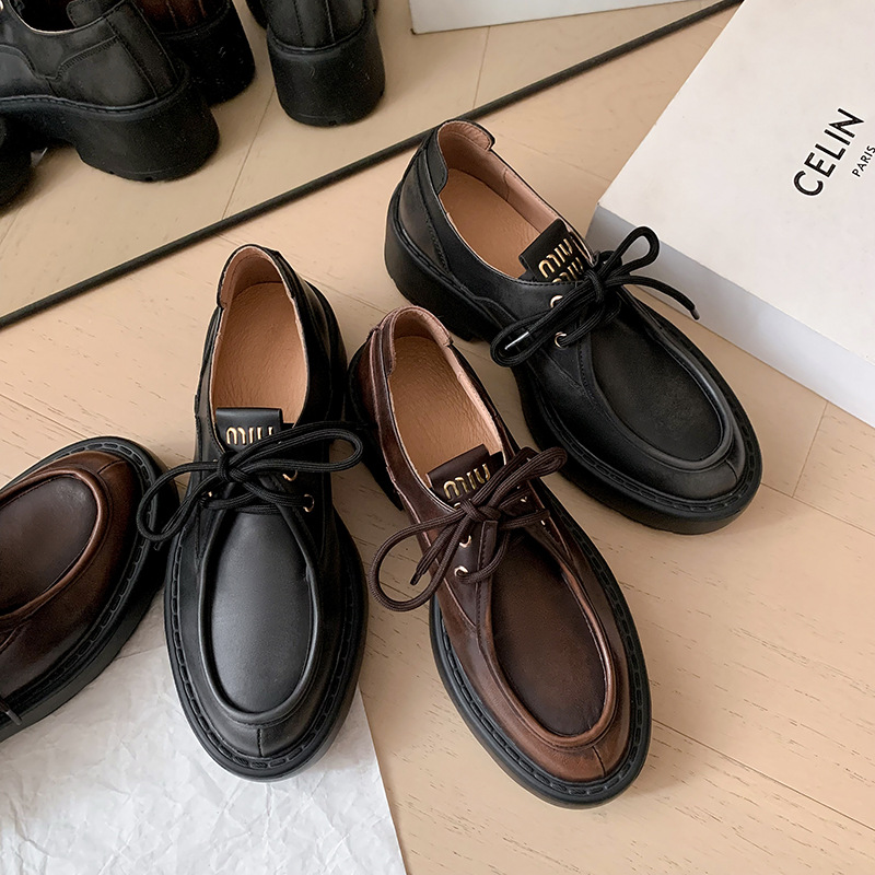 새로운 빈티지 컬러 광택 모리 스타일 올 매치 로퍼 두꺼운 일본 스타일 대학 작은 가죽 신발 하이힐 여성 컬러 광택 여성 신발스토어 가기