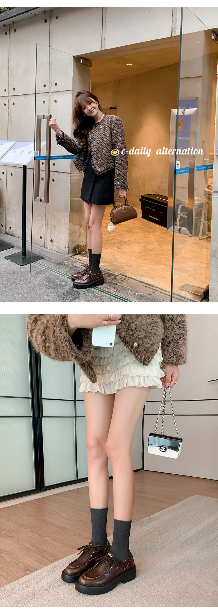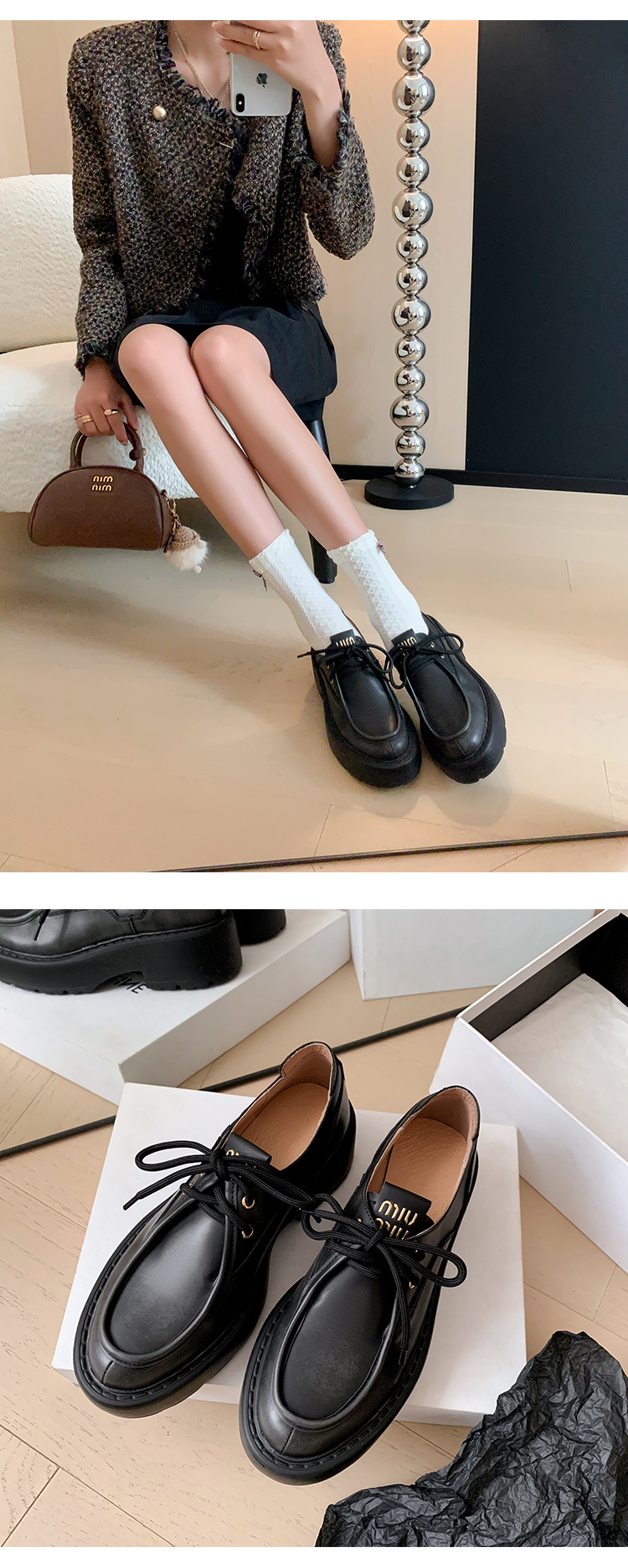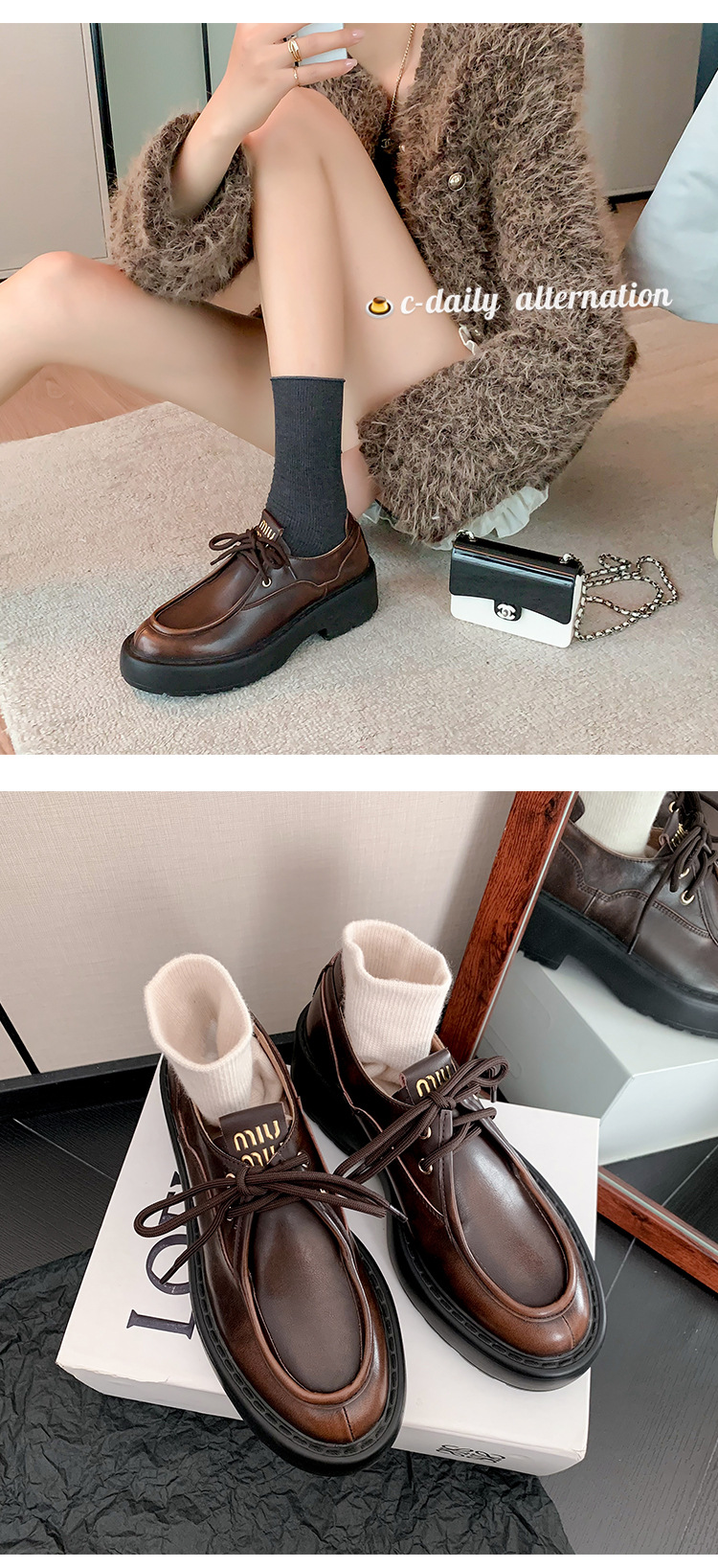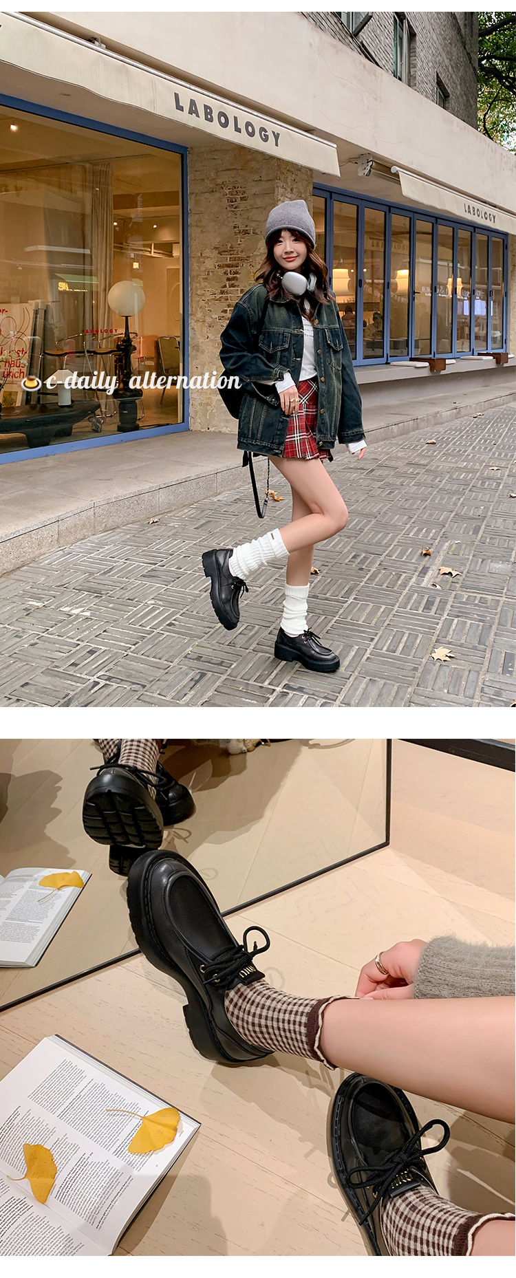새로운 빈티지 컬러 광택 모리 스타일 올 매치 로퍼 두꺼운 일본 스타일 대학 작은 가죽 신발 하이힐 여성 컬러 광택 여성 신발스토어 가기