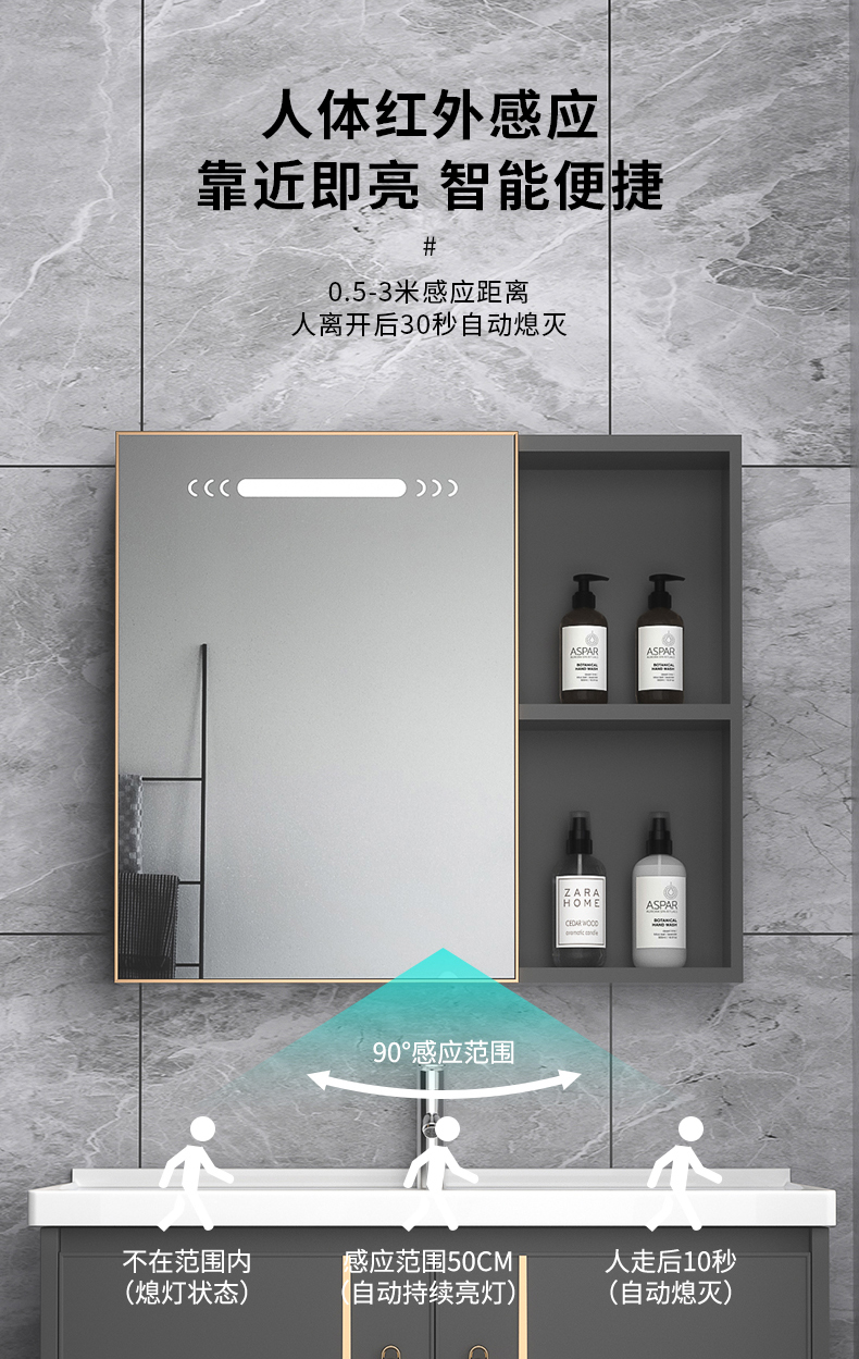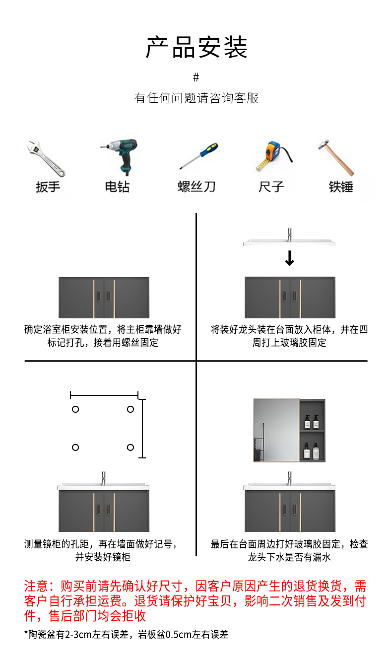 • 60cm 메인 캐비닛 + 흰색 슬레이트 + 거울 캐비닛