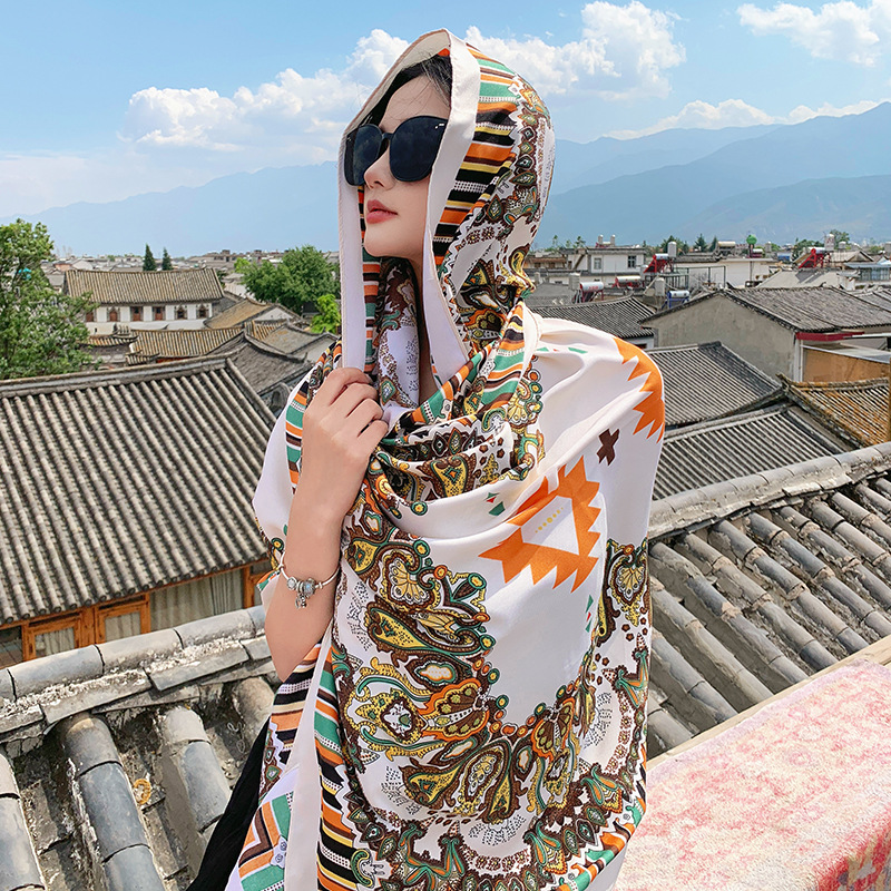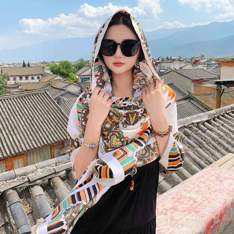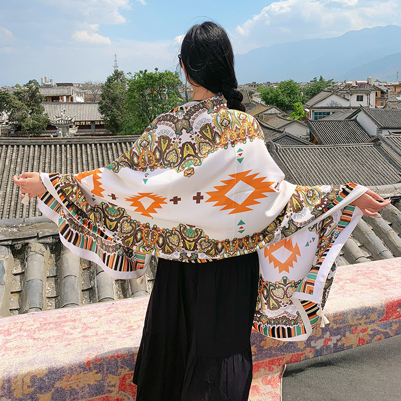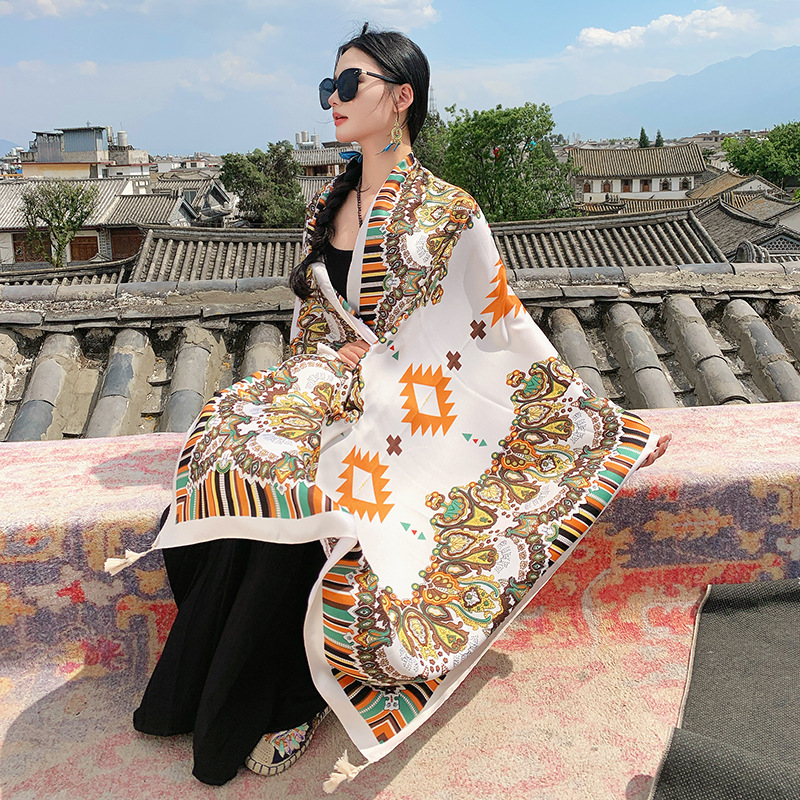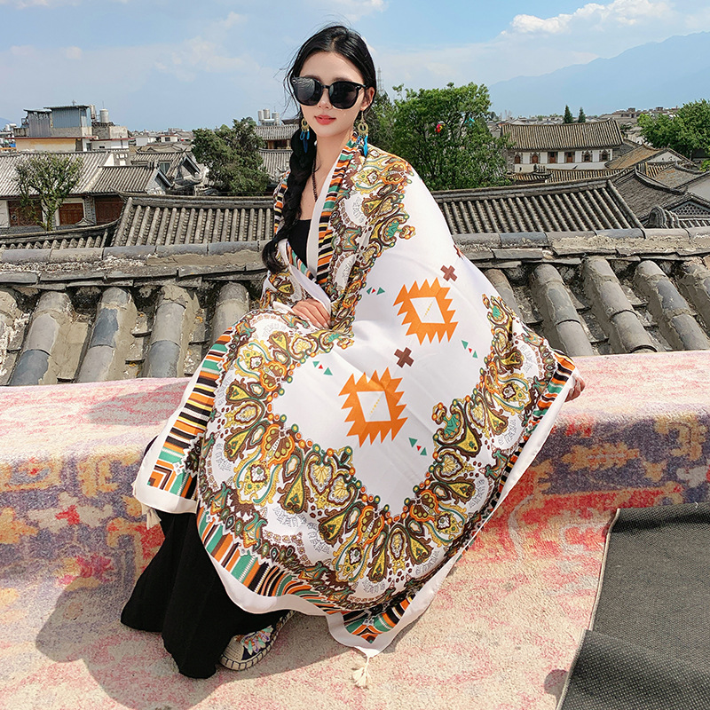 민족 복고풍 캐주얼 성격 풀 오버 목도리 다이아몬드 캐슈 베이지 비치 타월 사진 휴가 큰 망토