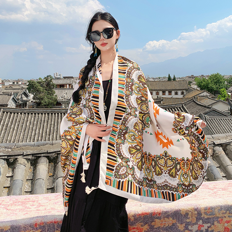 민족 복고풍 캐주얼 성격 풀 오버 목도리 다이아몬드 캐슈 베이지 비치 타월 사진 휴가 큰 망토스토어 가기