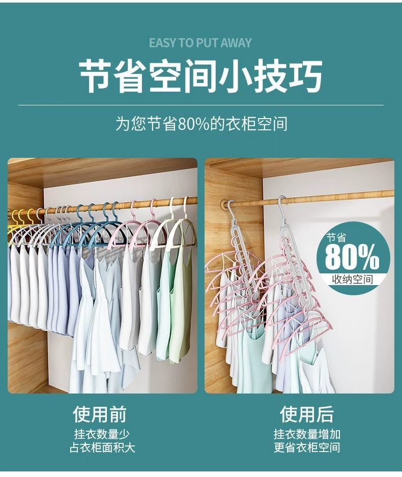 다기능 9 홀 옷 옷걸이 가정용 옷 교수형 기숙사 접는 마술 옷 옷걸이 공간 절약형 침실 보관 유물