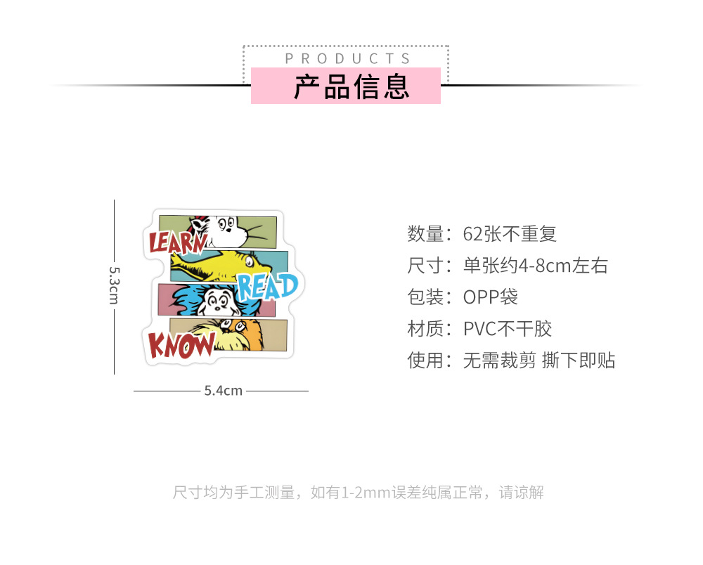 60 새로운 Dr. Seuss 낙서 스티커 자동차 수하물 컵 스티커 DIY 도매스토어 가기