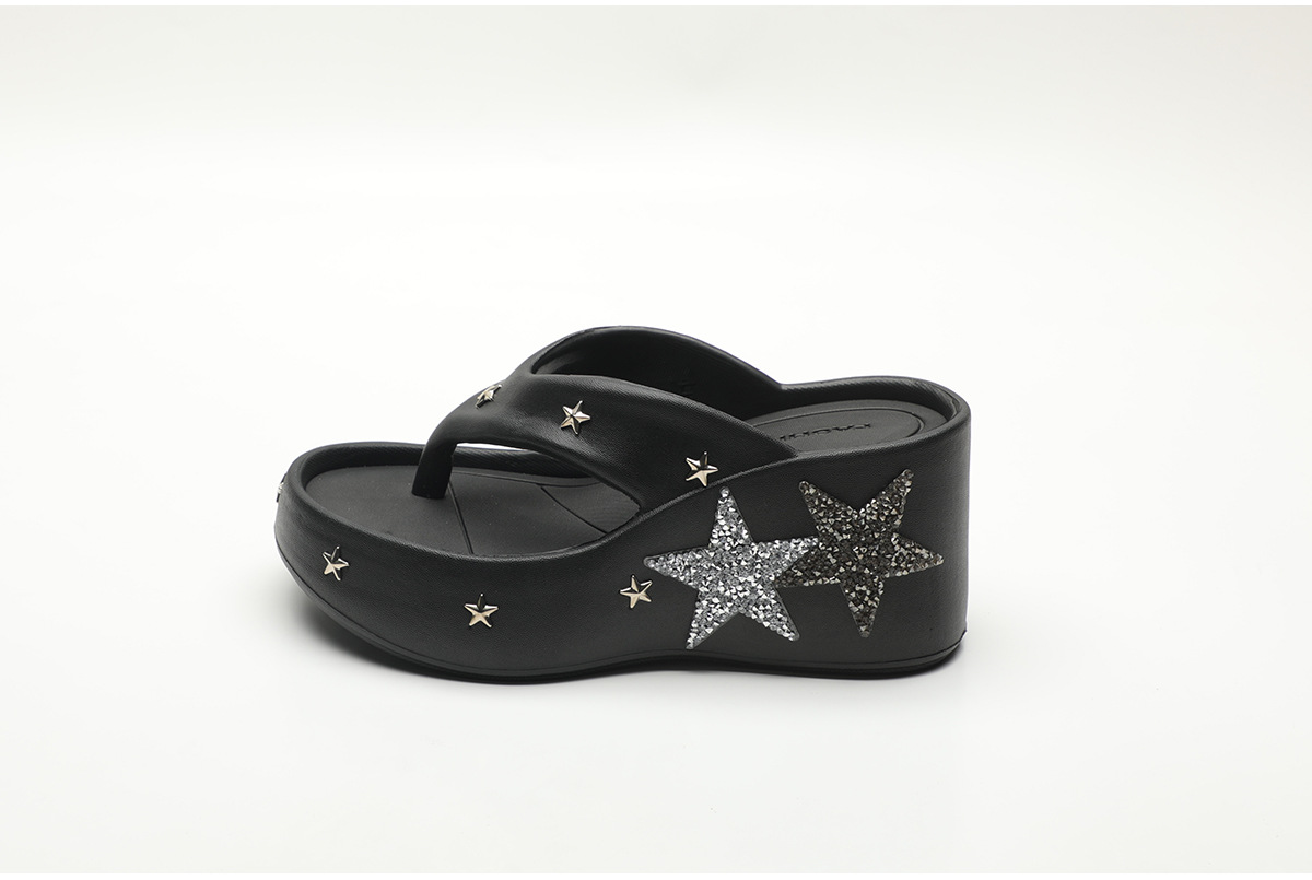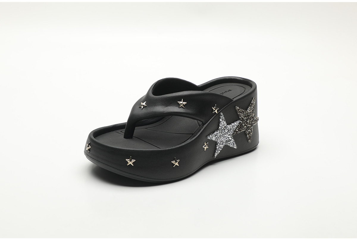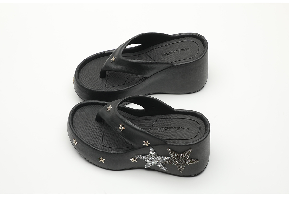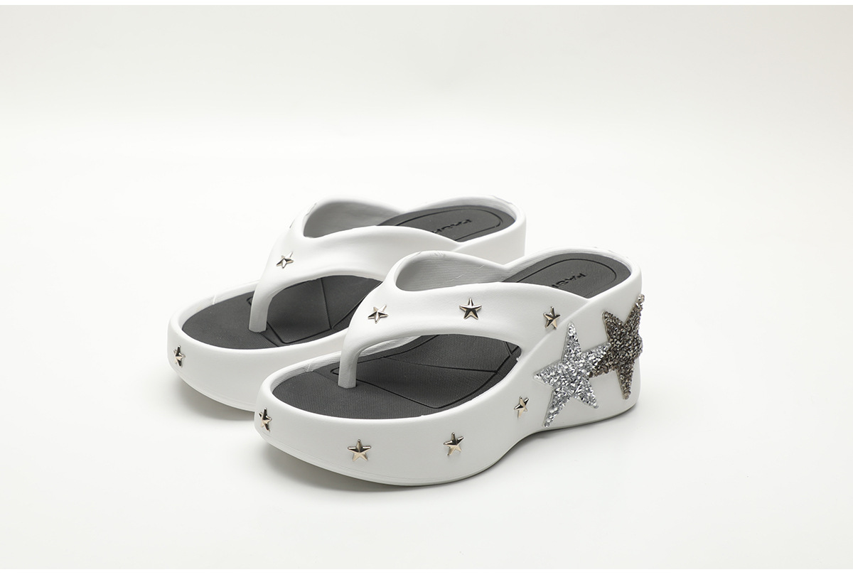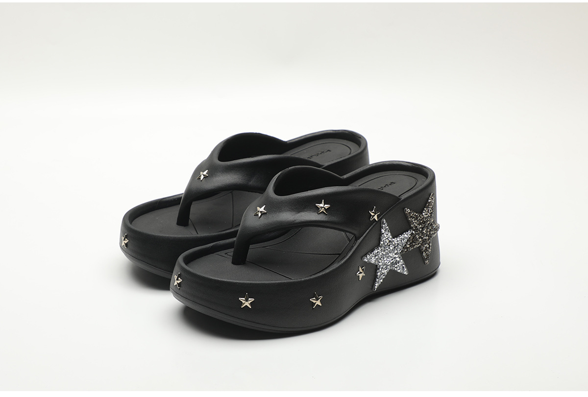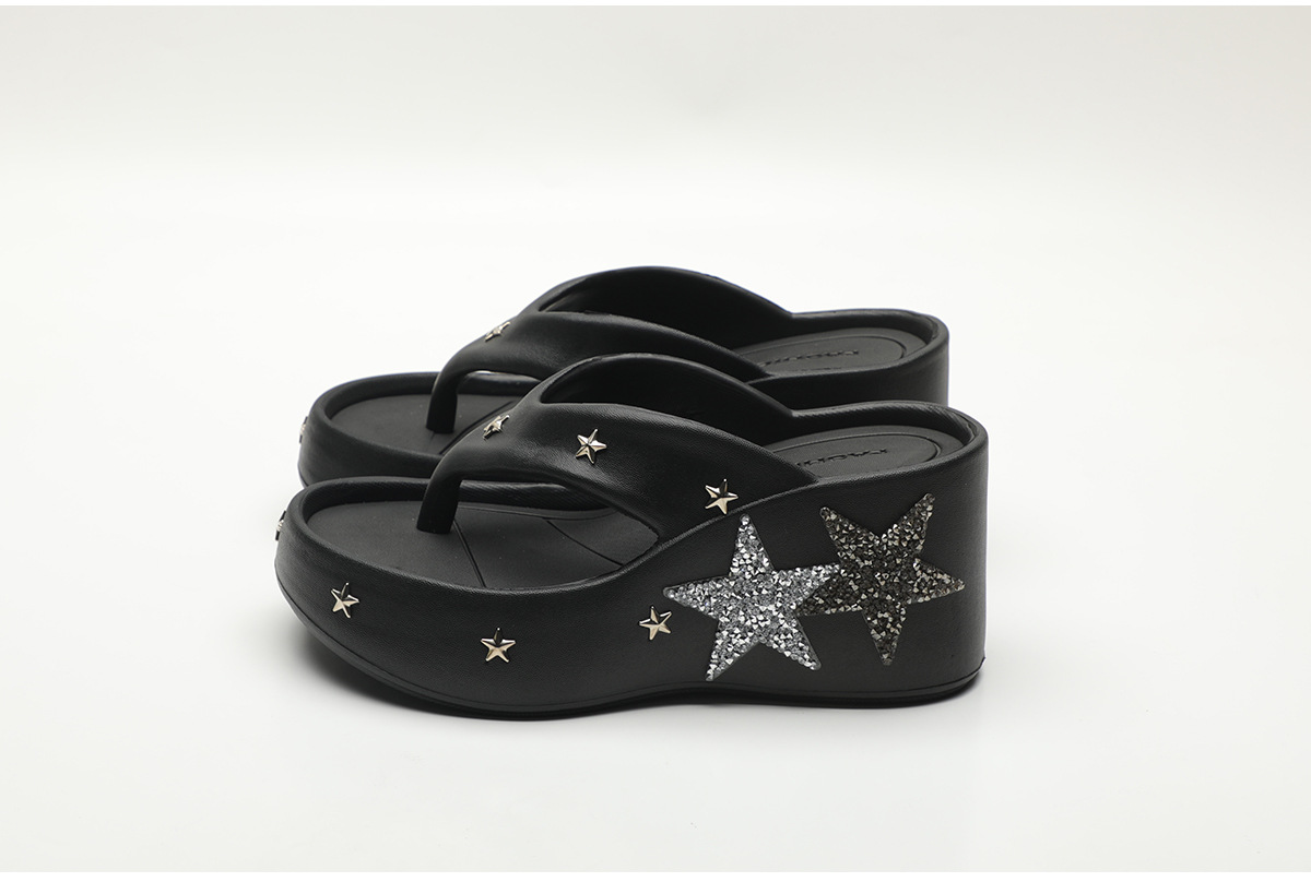 파이브형 스타 고가 플립 플롭스 여성 여름 아우터웨어 2024 새로운 펑크 스타일 클립 웨지 유행 샌들스토어 가기