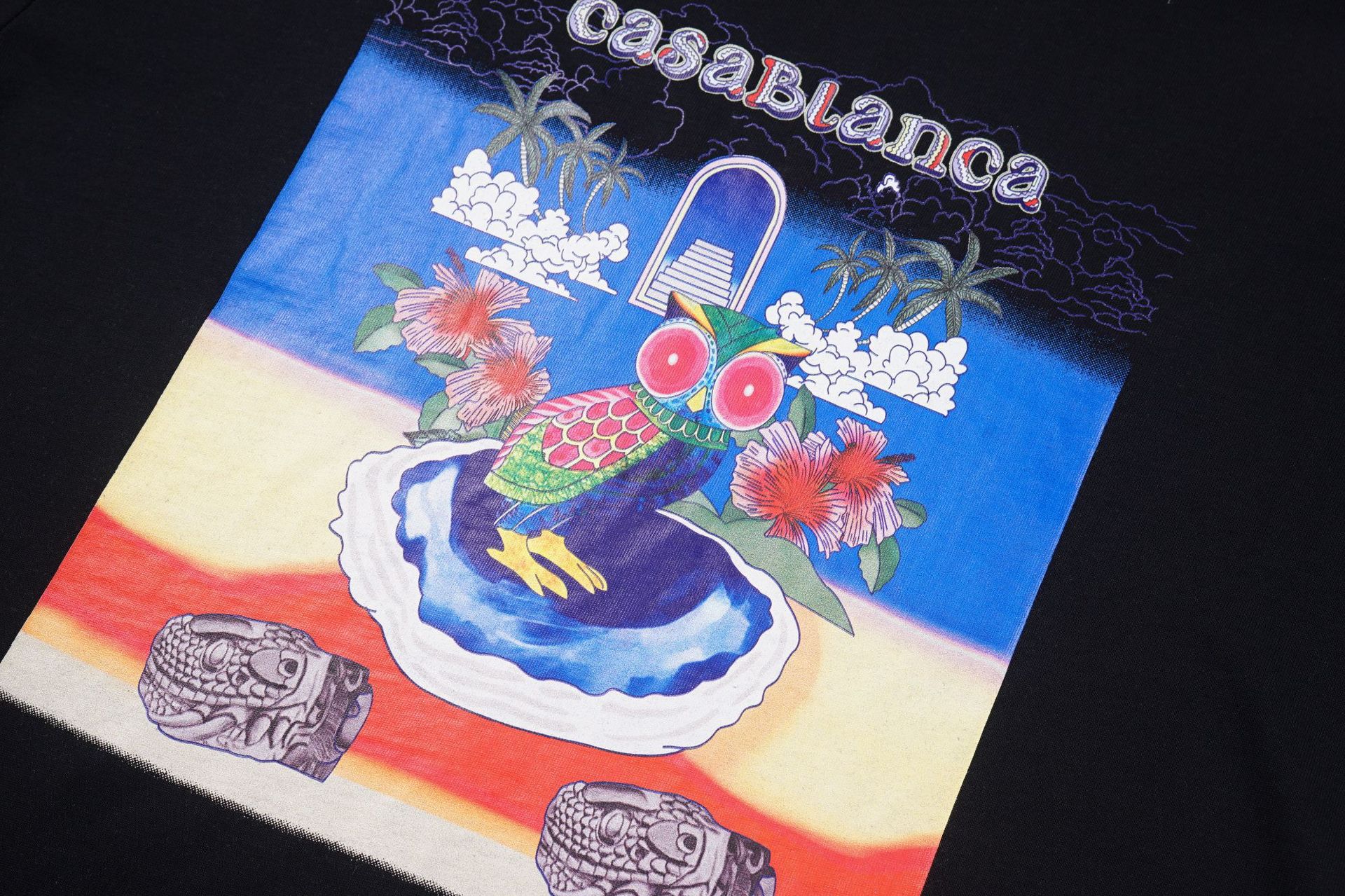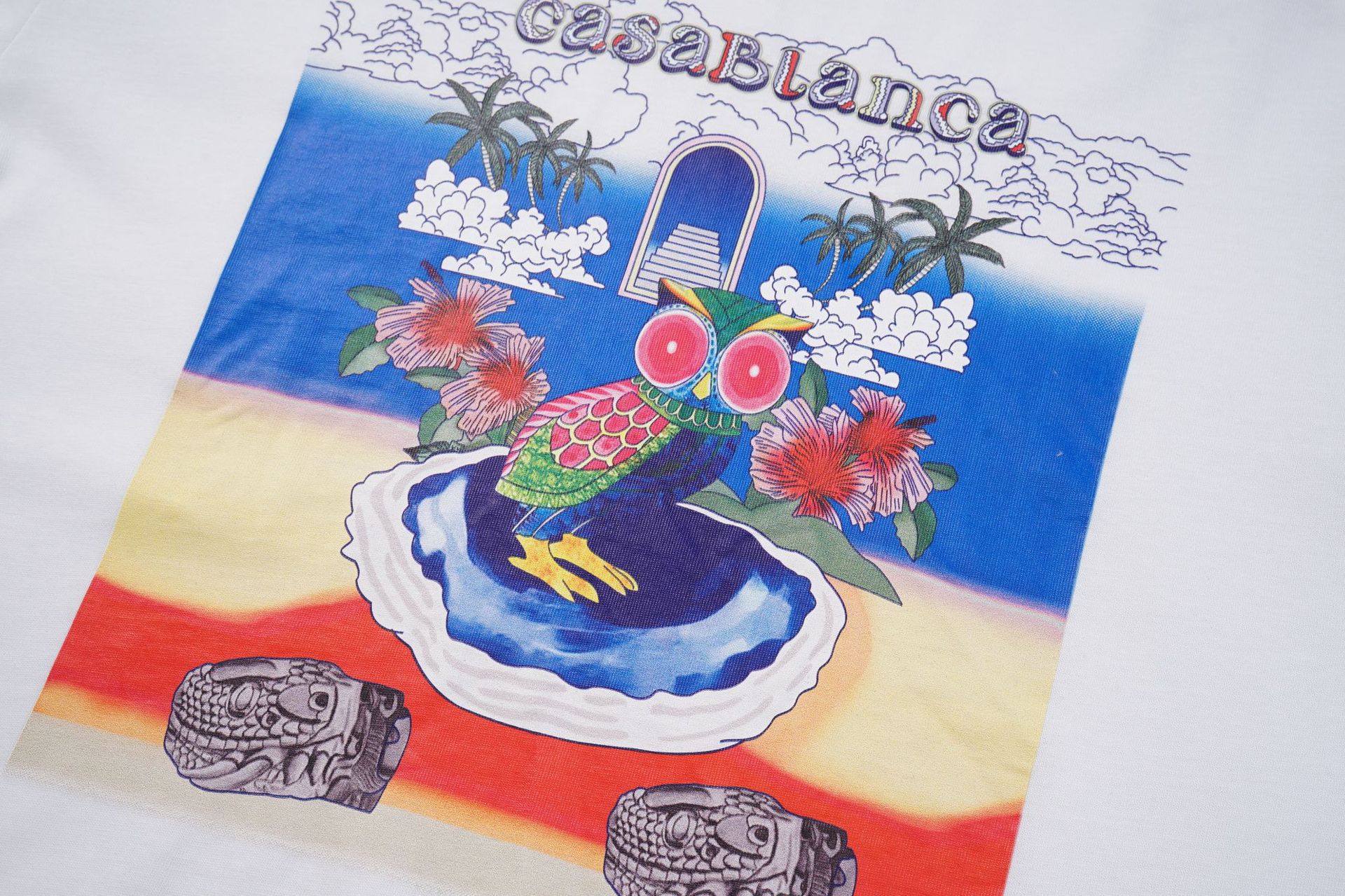 새로운 카사 블랑카 반팔 24 봄/여름 새 올빼미 인쇄 편지 인쇄 독특한 둥근 목 티셔츠