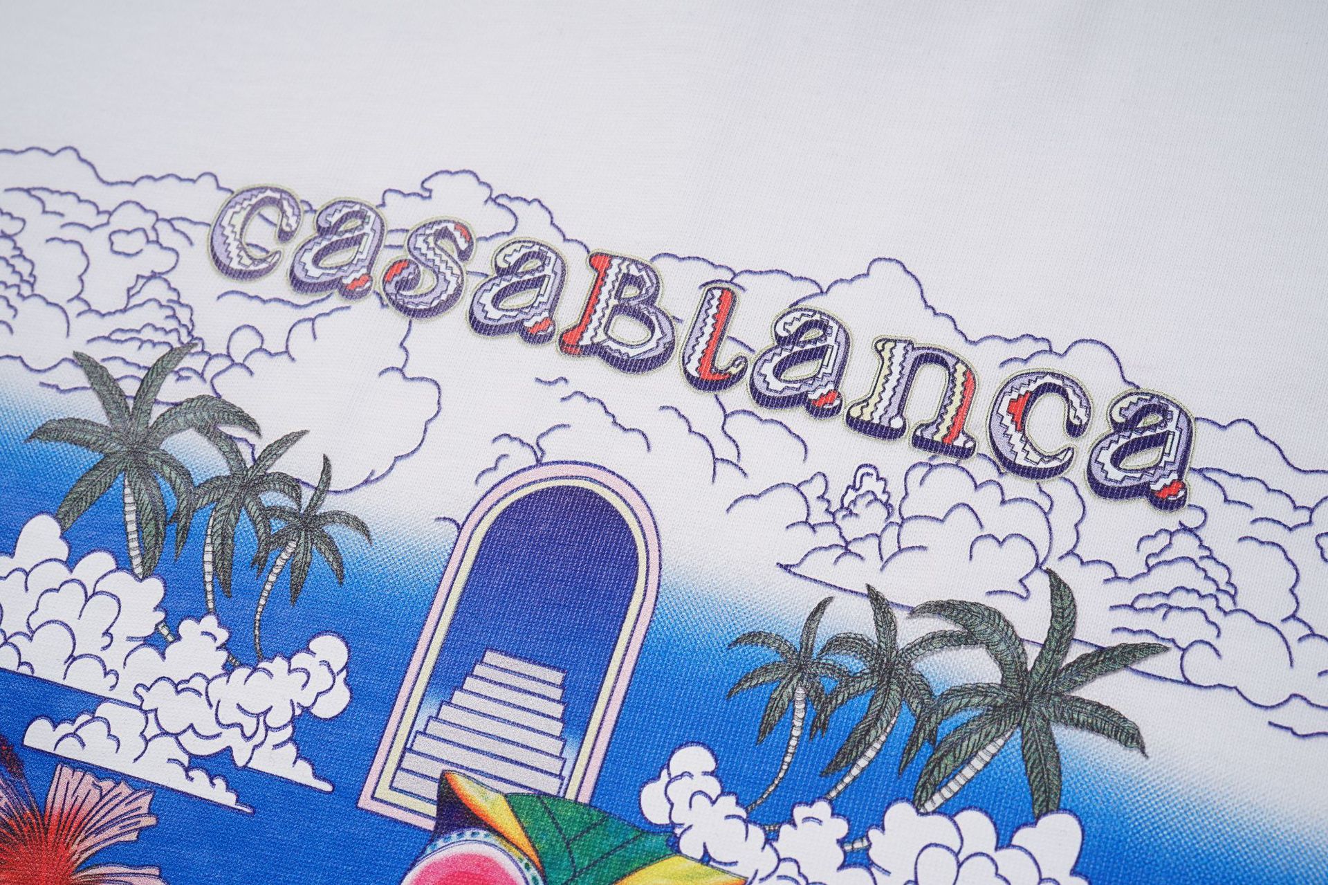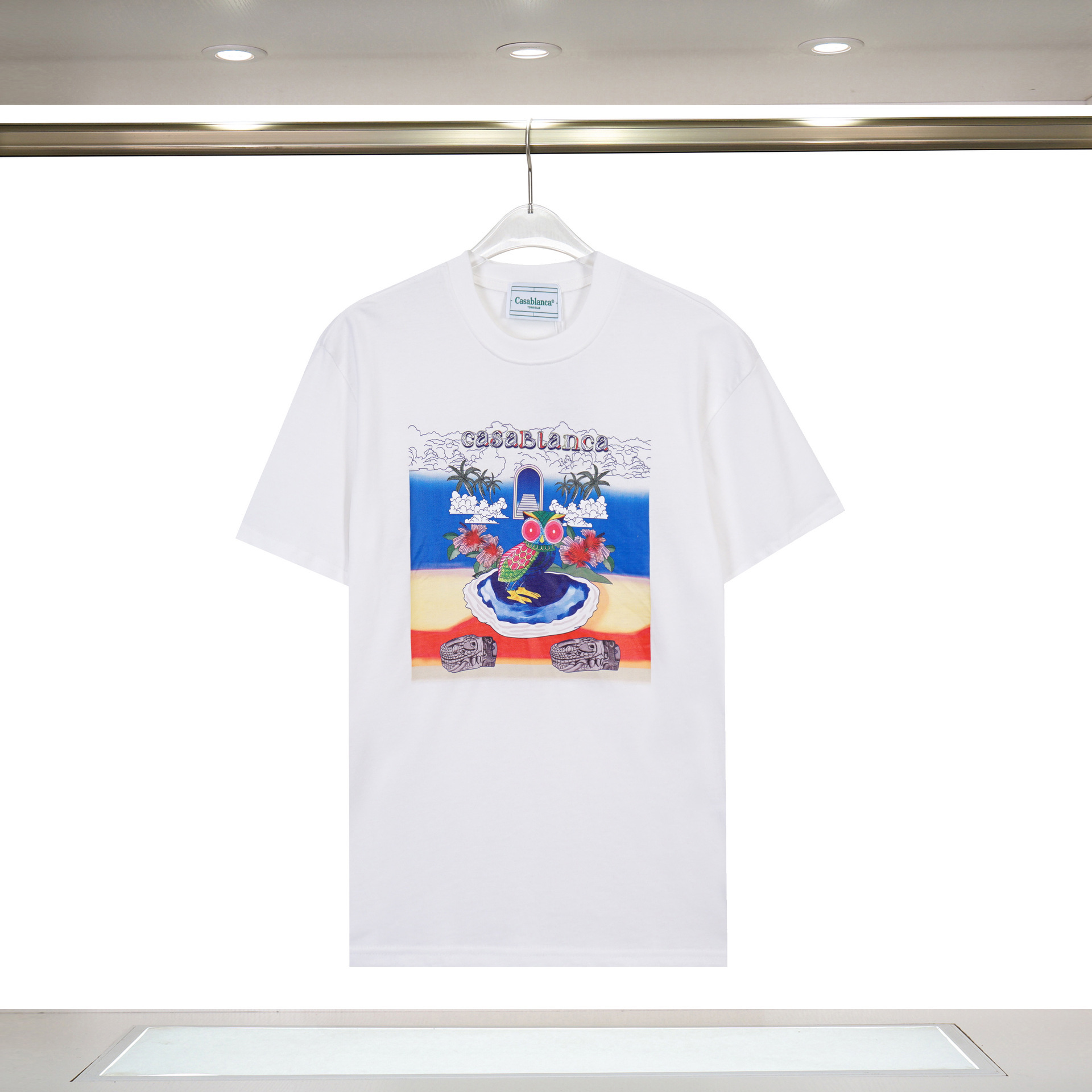 새로운 카사 블랑카 반팔 24 봄/여름 새 올빼미 인쇄 편지 인쇄 독특한 둥근 목 티셔츠스토어 가기