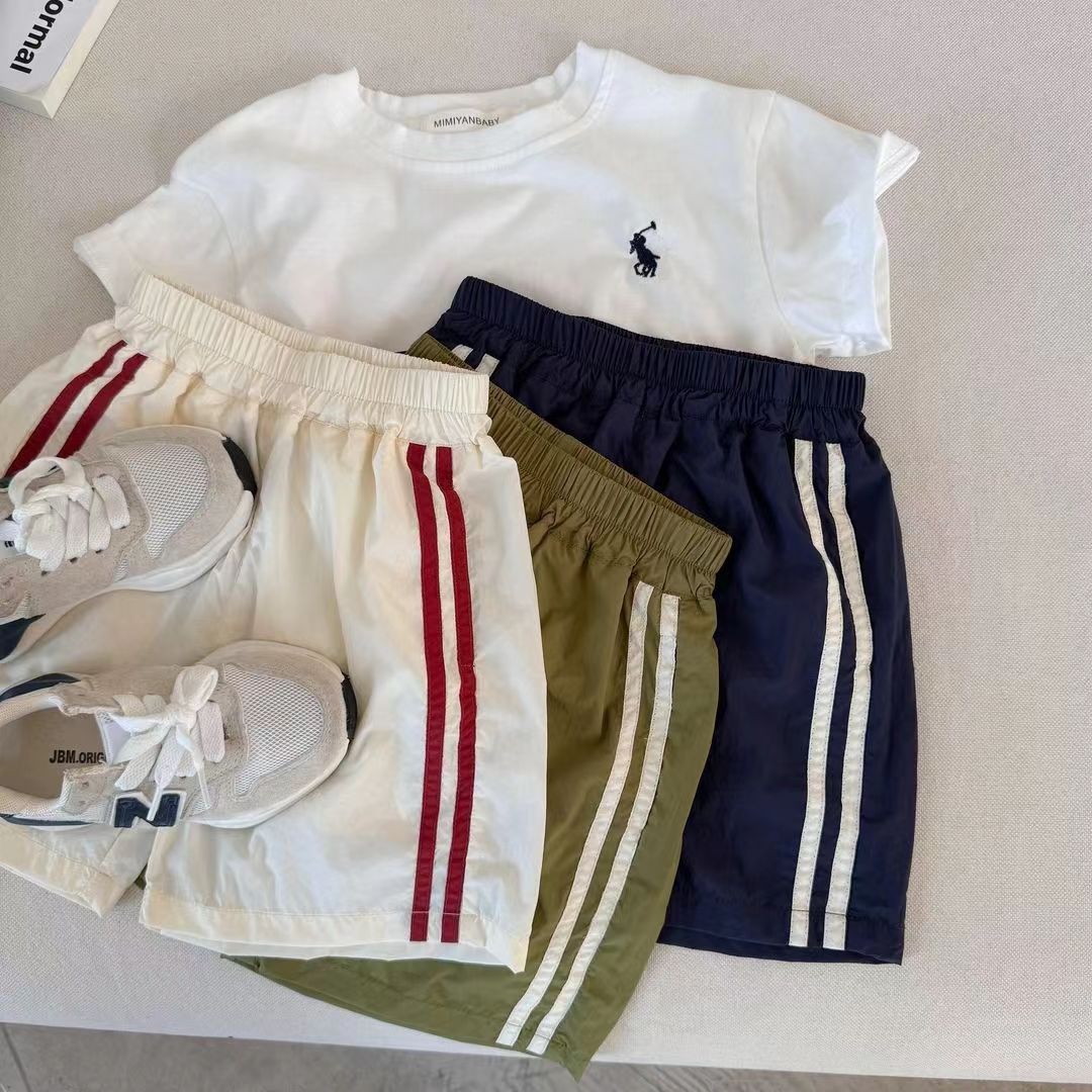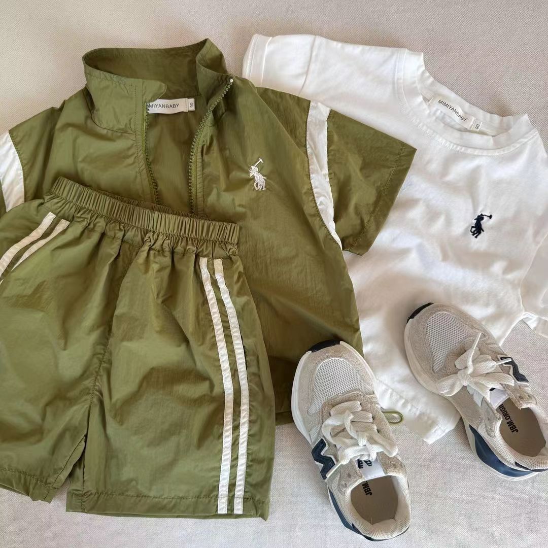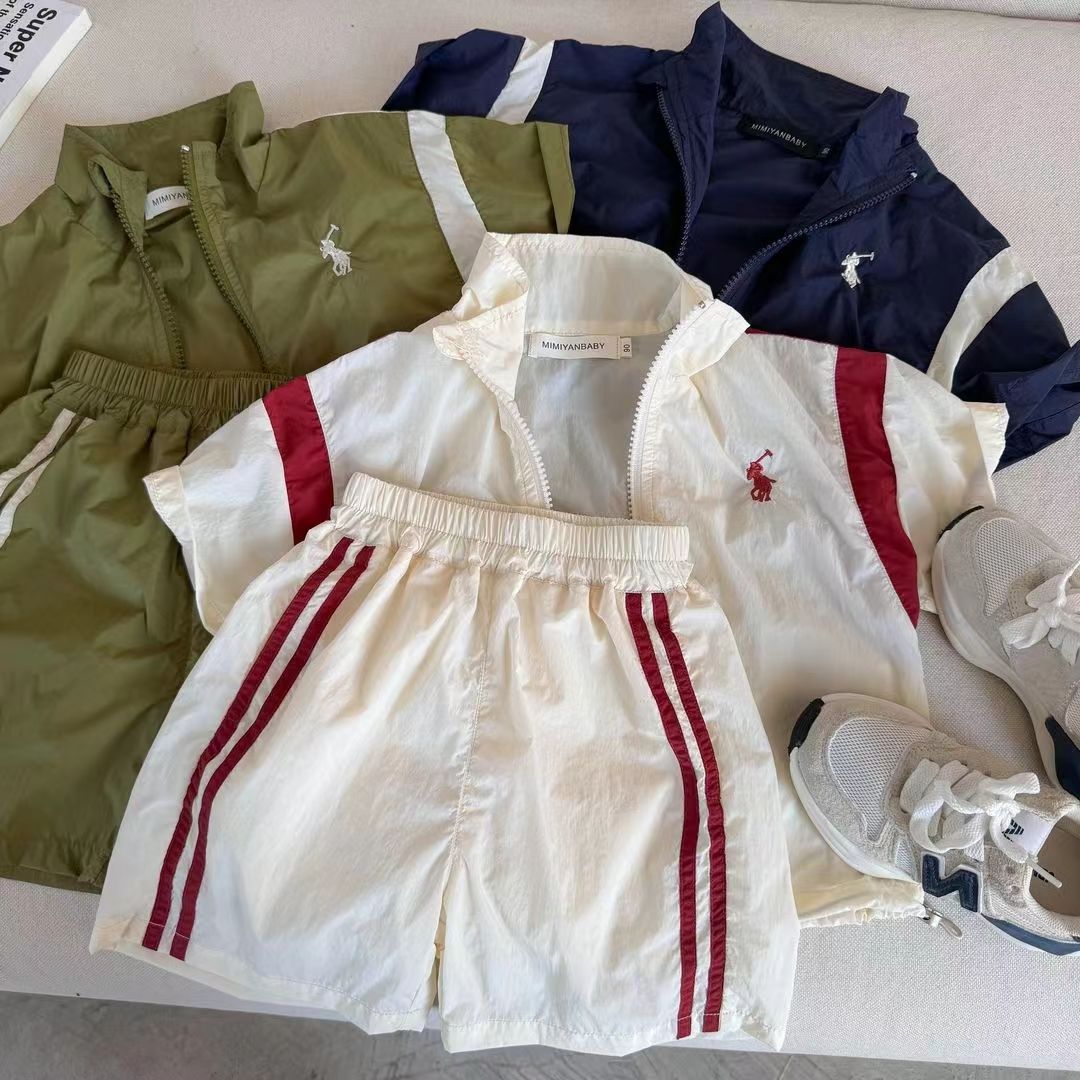 2024 여름 새로운 소년 소녀 컬러 어린이 세트 선 스크린 짧은 소매 아기 반바지 스포츠 2 피스 트렌디스토어 가기