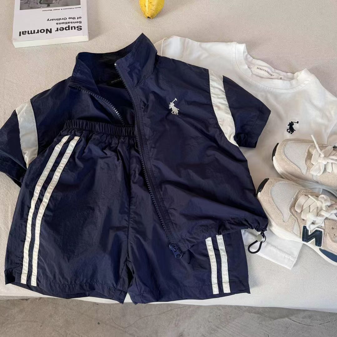 2024 여름 새로운 소년 소녀 컬러 어린이 세트 선 스크린 짧은 소매 아기 반바지 스포츠 2 피스 트렌디