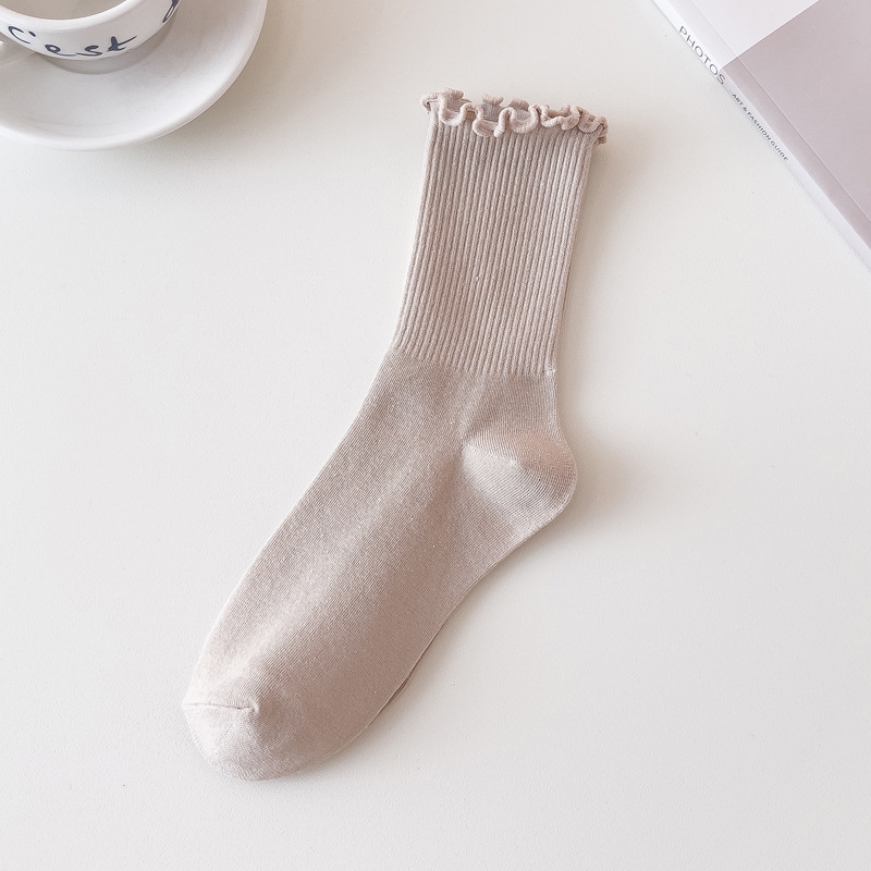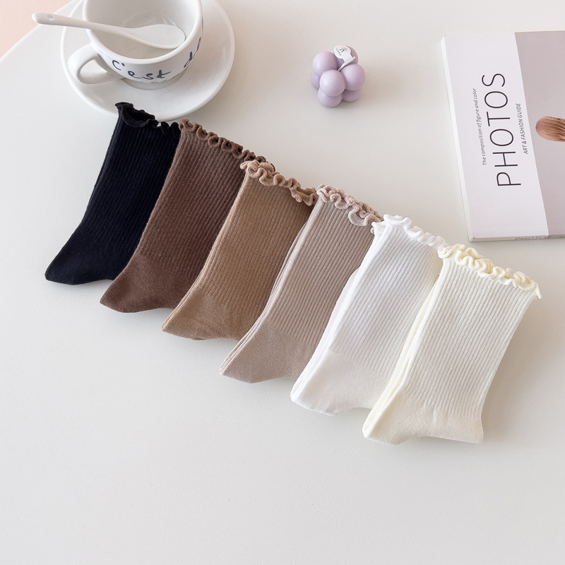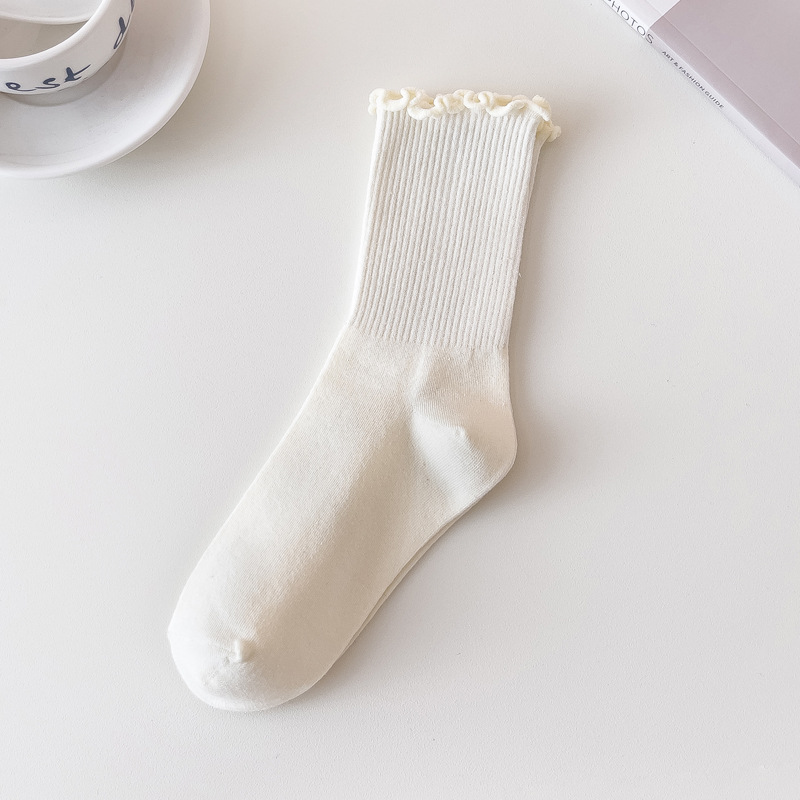 곰팡이 가장자리 양말 여성용 봄과 가을 중간 튜브 순면 스태킹 양말 인스타그램 스타일 레이스 미드 튜브 문 양말