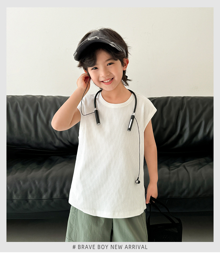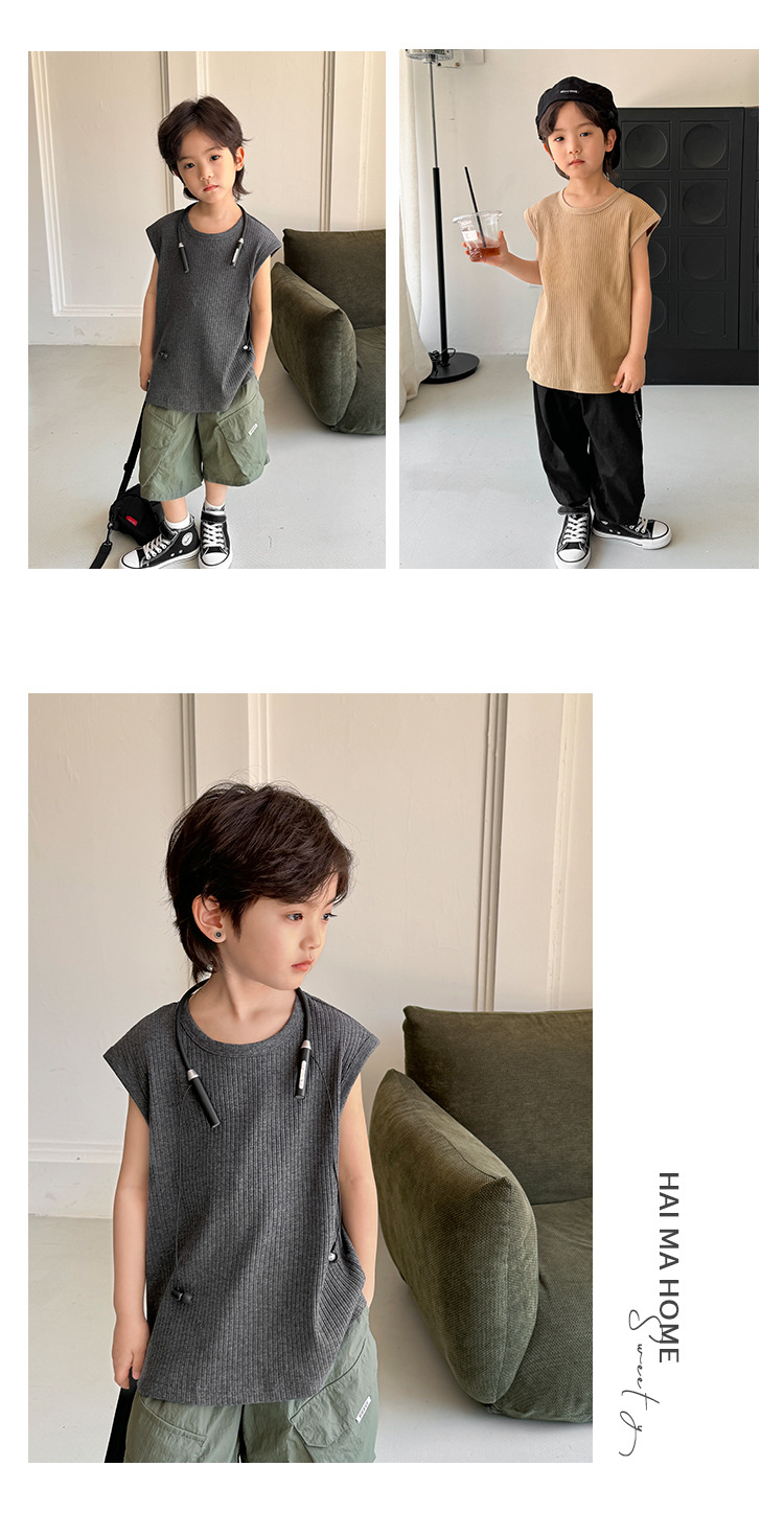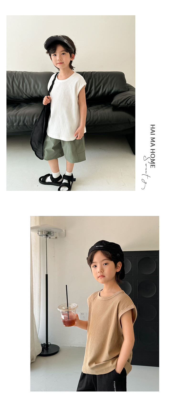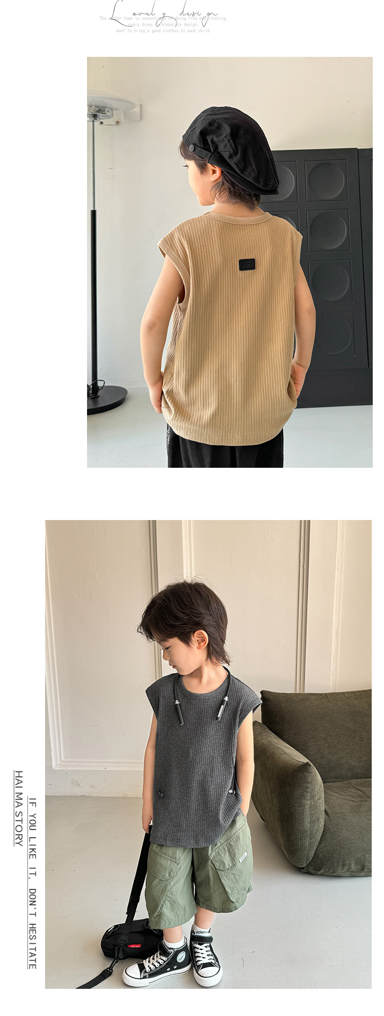 하이마 2024 년 여름 새 남학생 스타일리스트 민소매 티셔츠 조끼 어린이 한국 어린이 의류스토어 가기