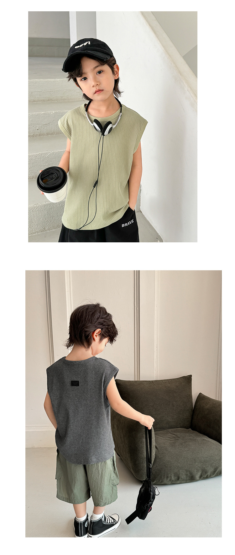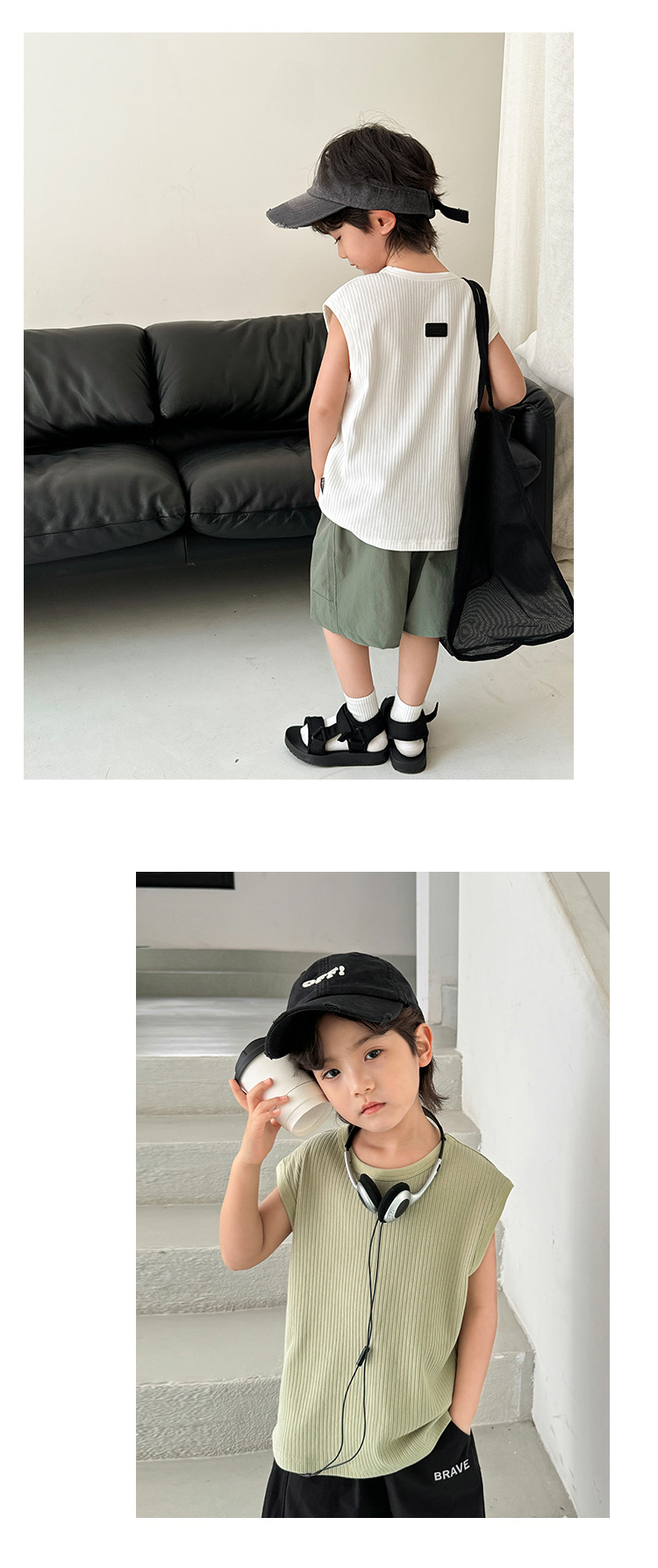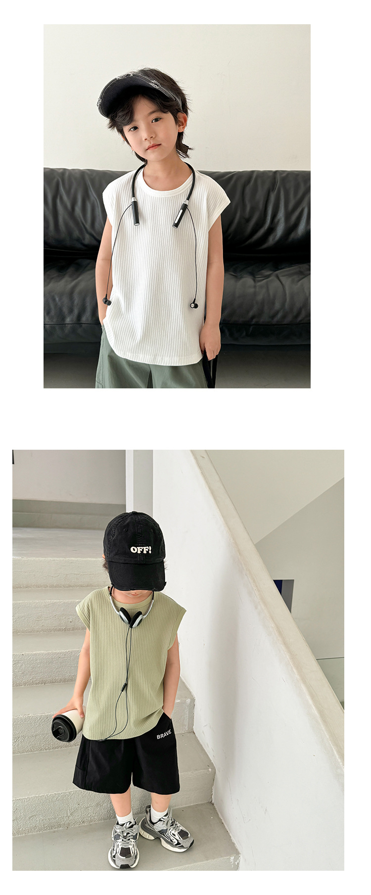 하이마 2024 년 여름 새 남학생 스타일리스트 민소매 티셔츠 조끼 어린이 한국 어린이 의류스토어 가기