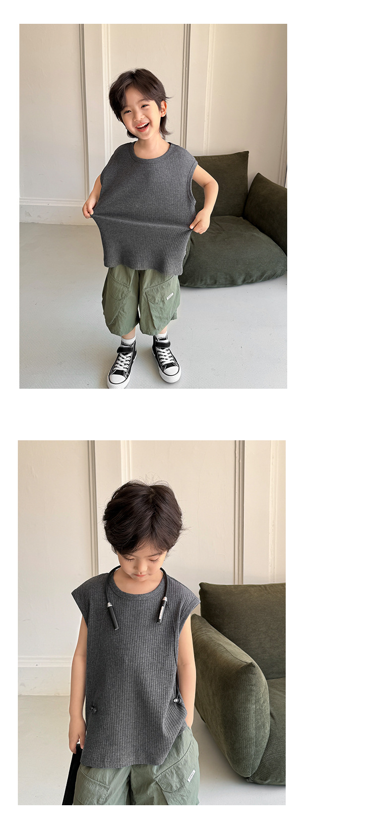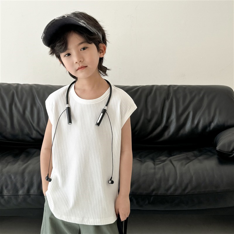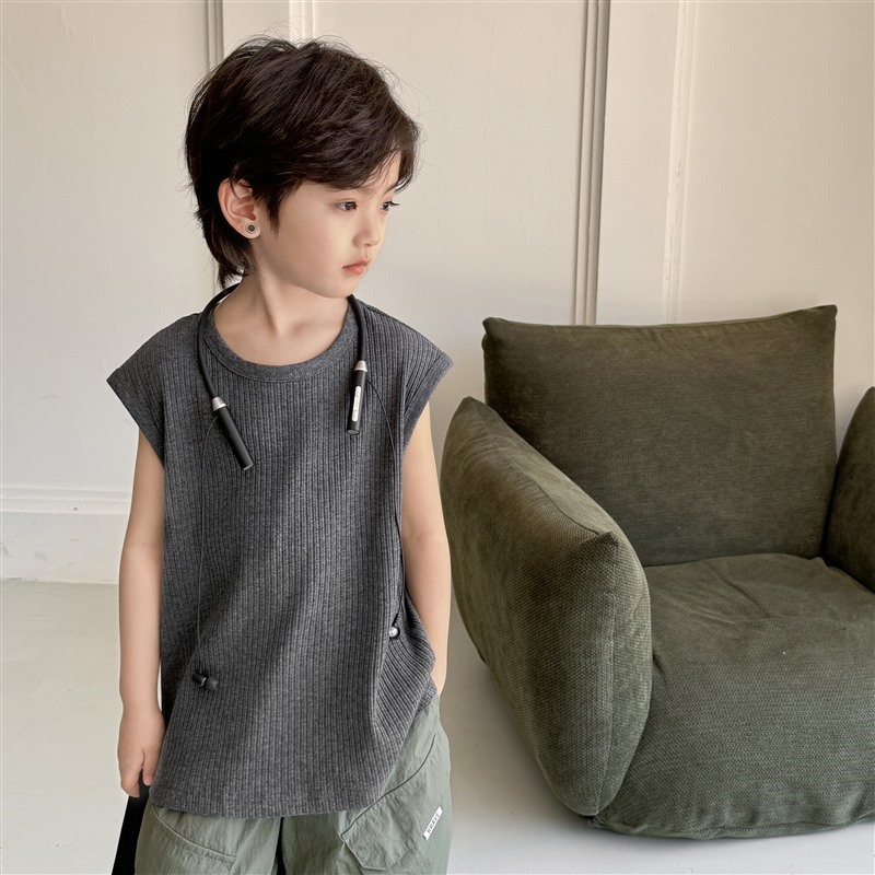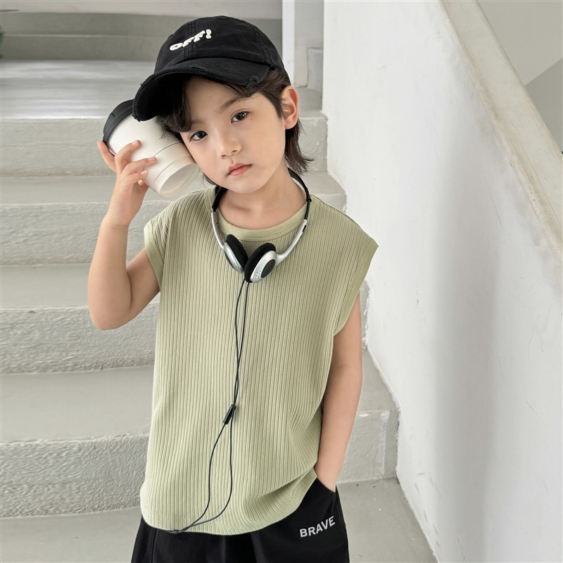 하이마 2024 년 여름 새 남학생 스타일리스트 민소매 티셔츠 조끼 어린이 한국 어린이 의류