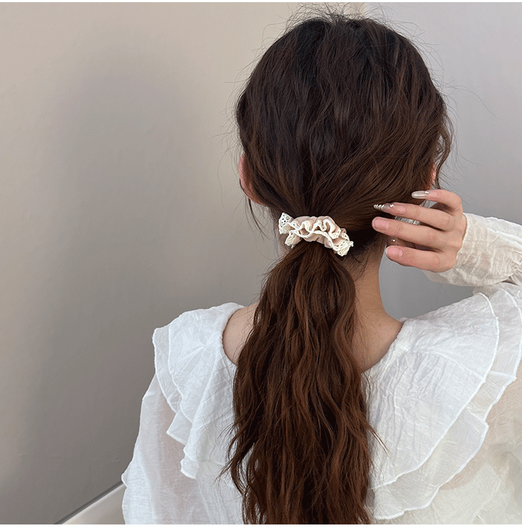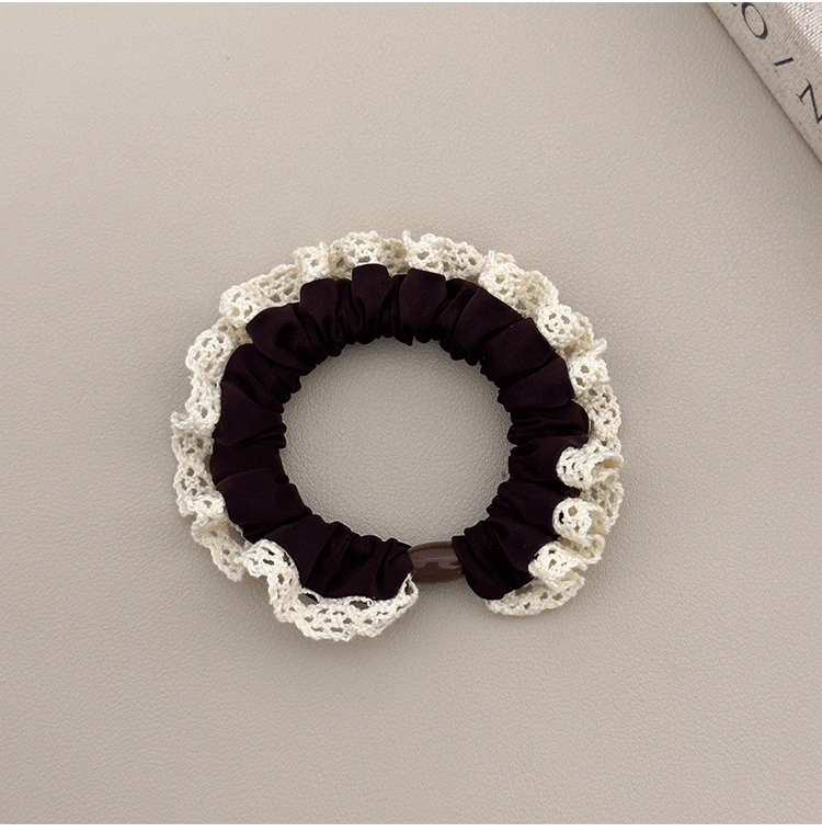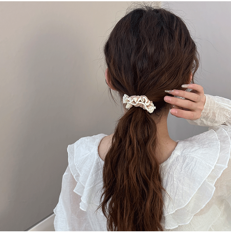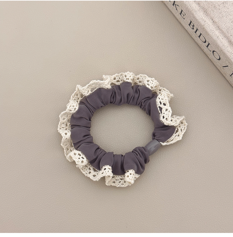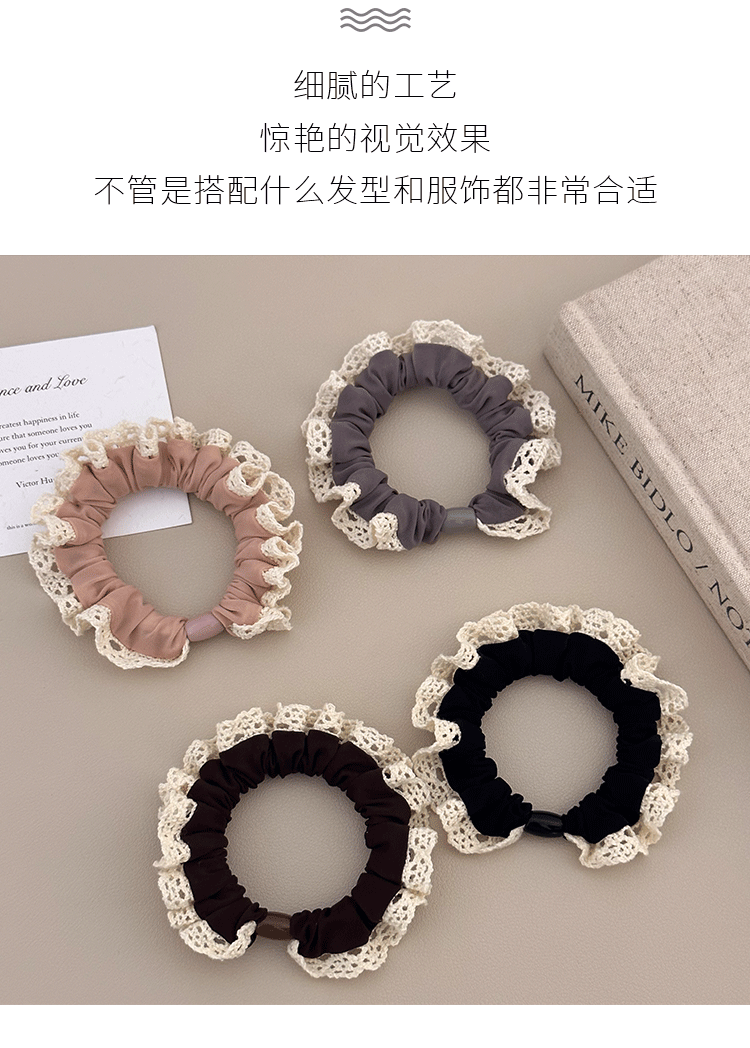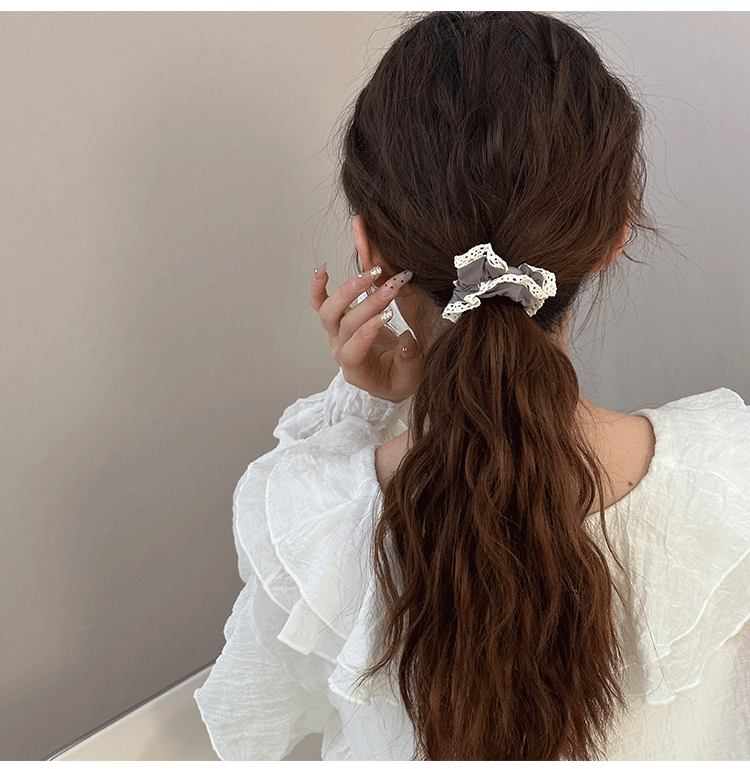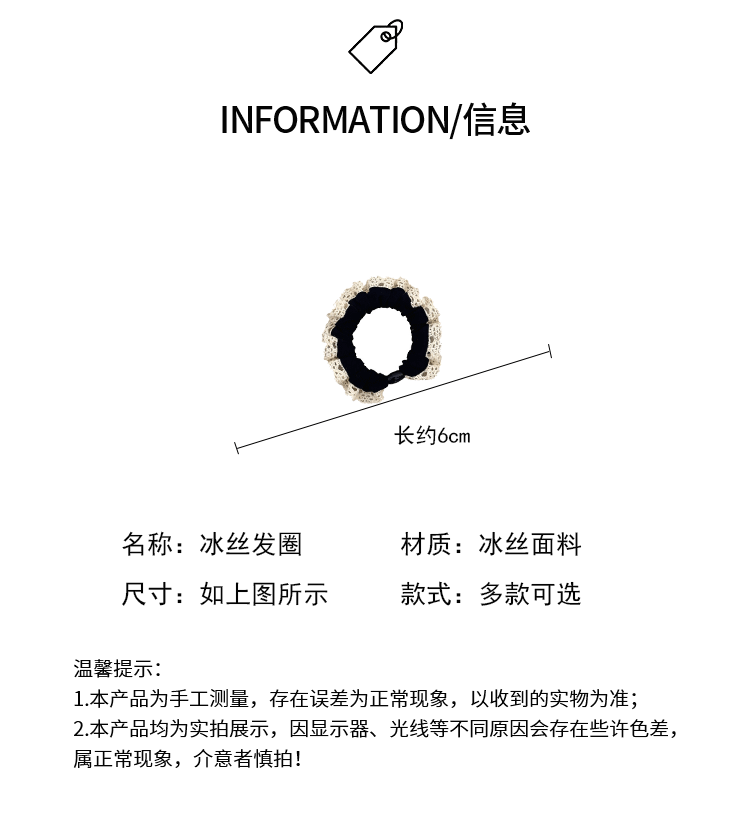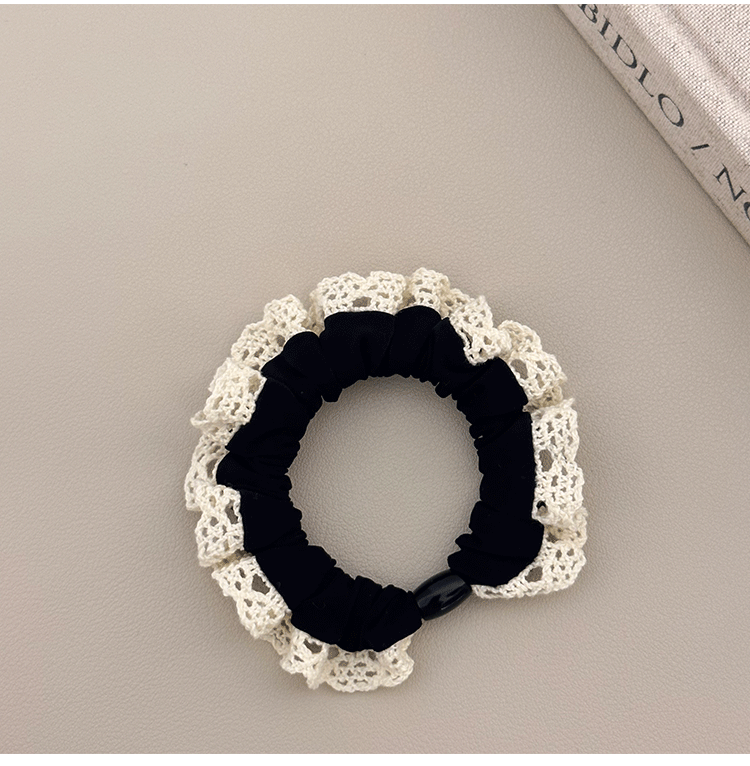 Xiaoxiang 스타일 레이스 엣지 아이스 실크 헤어 링 블랙 대형 Intestine 헤드 로프 봄과 여름 고급 센스 고무 밴드 헤어 로프 프랑스 스타일스토어 가기