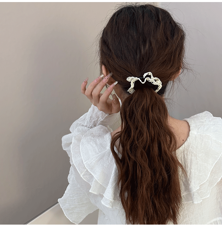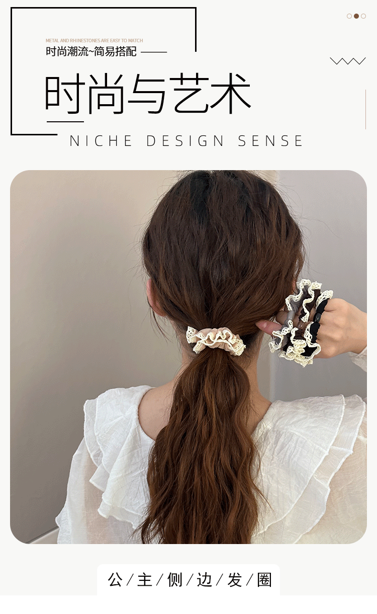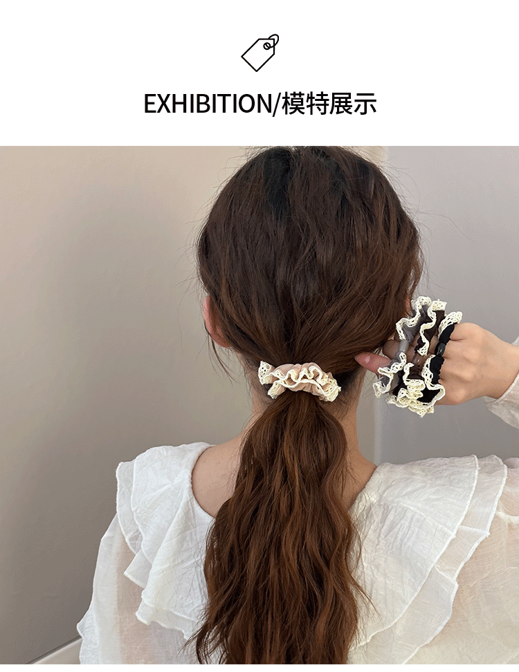 Xiaoxiang 스타일 레이스 엣지 아이스 실크 헤어 링 블랙 대형 Intestine 헤드 로프 봄과 여름 고급 센스 고무 밴드 헤어 로프 프랑스 스타일