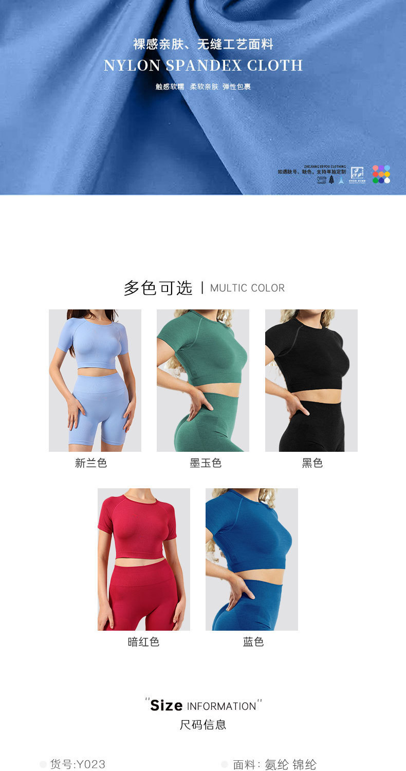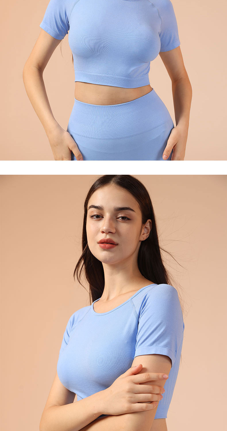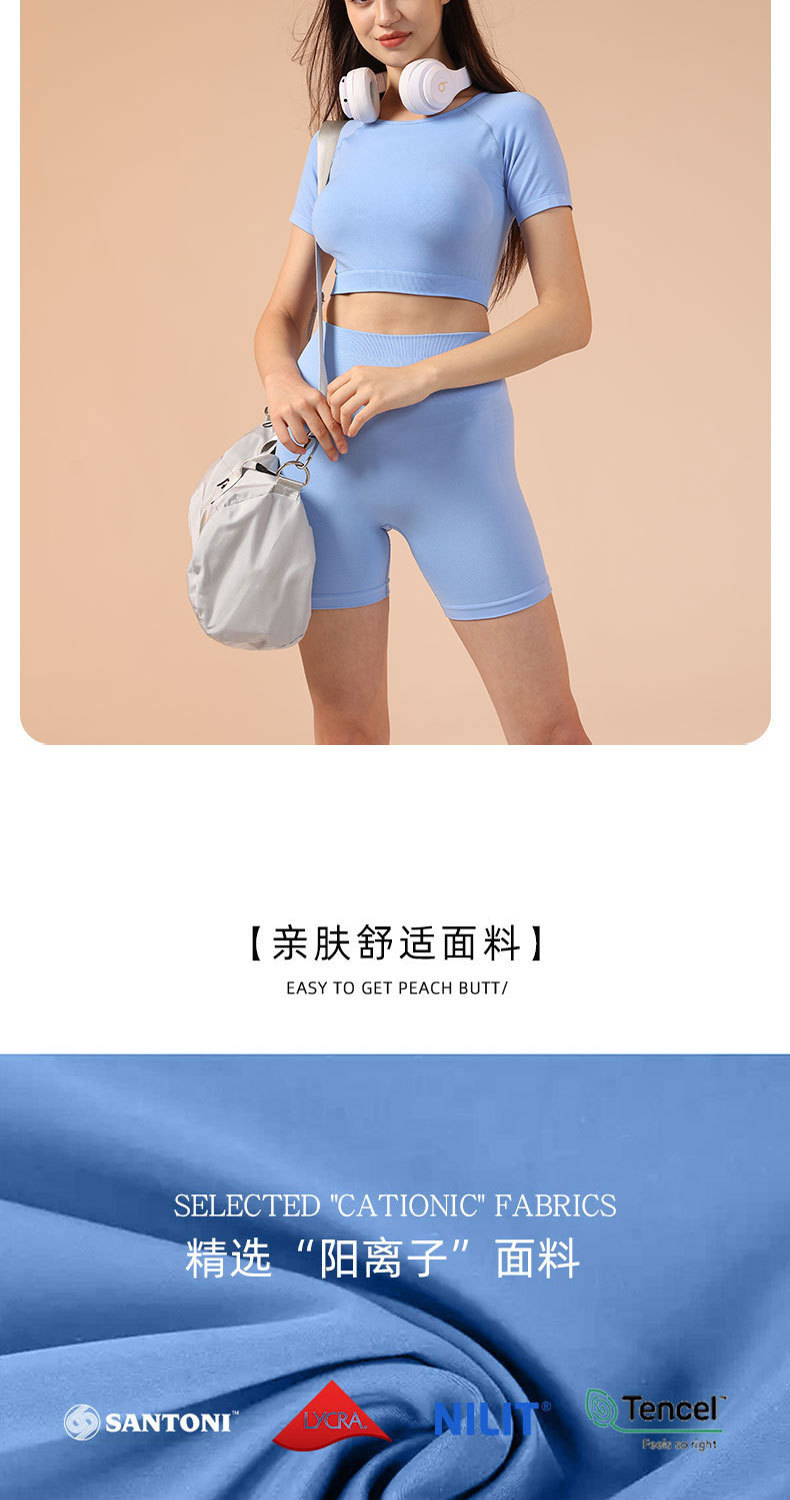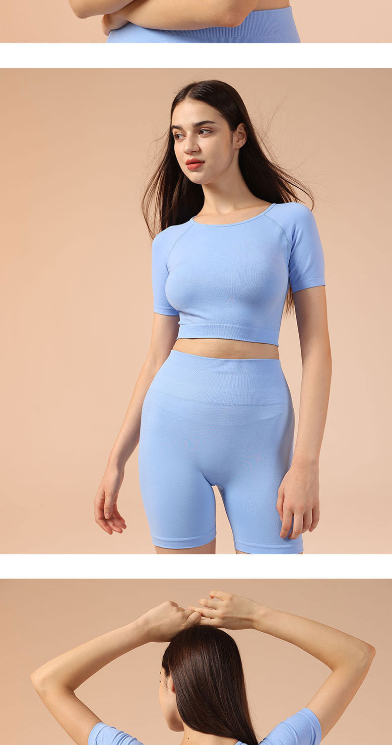 크로스보더 유럽 및 미국 스타일의 심리스 사이클링 의류, 고탄성 요가 반팔 반바지, 여름용 세트, 러닝, 스포츠, 피트니스 투피스 세트