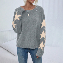 아마존 니트 스웨터 우아한 한 캐릭터 칼라 레이스 바느질 소매 크로스 국경 대외 무역 여성 솔리드 컬러 니트 탑