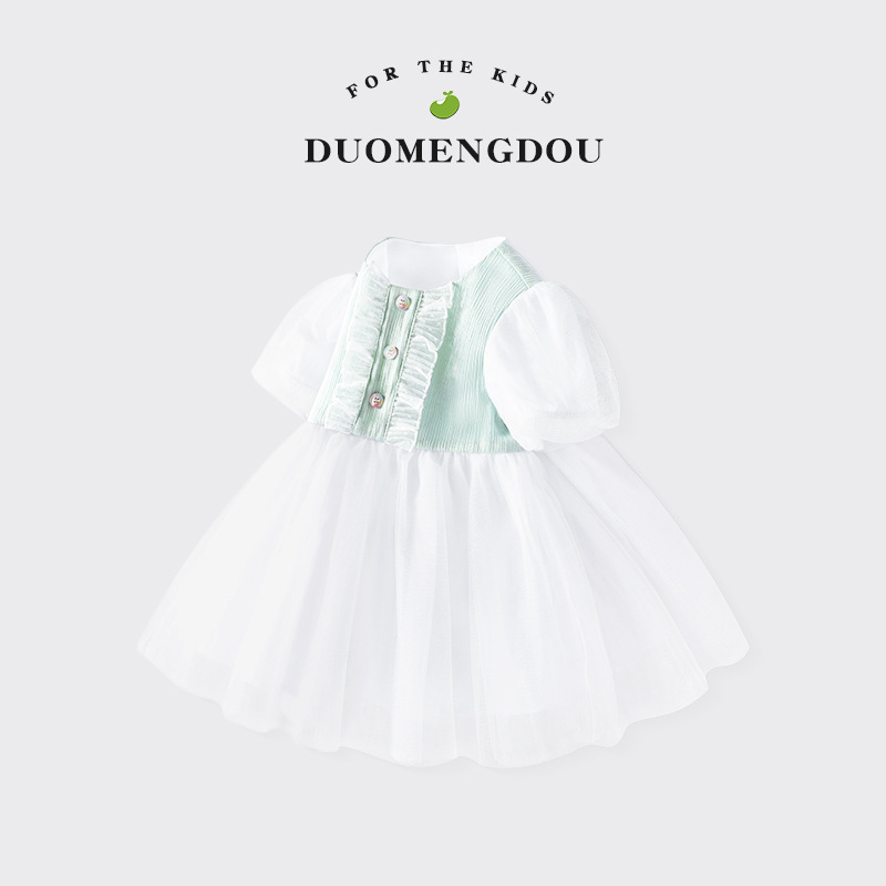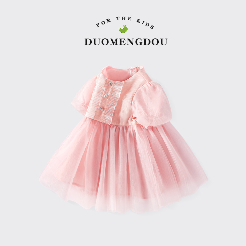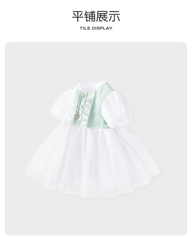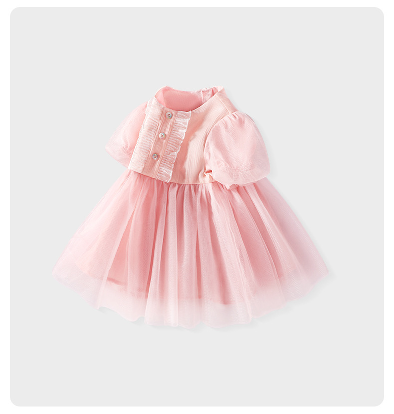 여아 여름 원피스, 레이스 장식 컬러풀 버튼 공주 드레스, 메쉬 스커트, 유아용 퍼프 스커트, 반팔 신상품스토어 가기