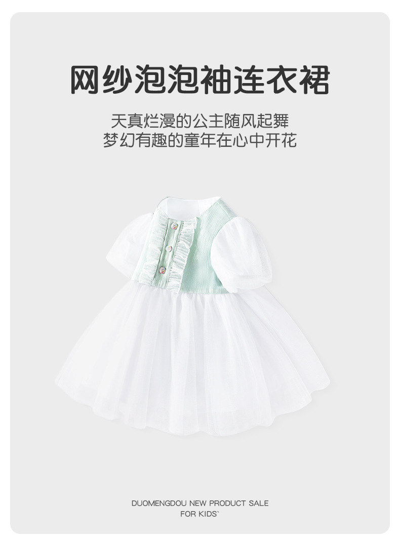 여아 여름 원피스, 레이스 장식 컬러풀 버튼 공주 드레스, 메쉬 스커트, 유아용 퍼프 스커트, 반팔 신상품