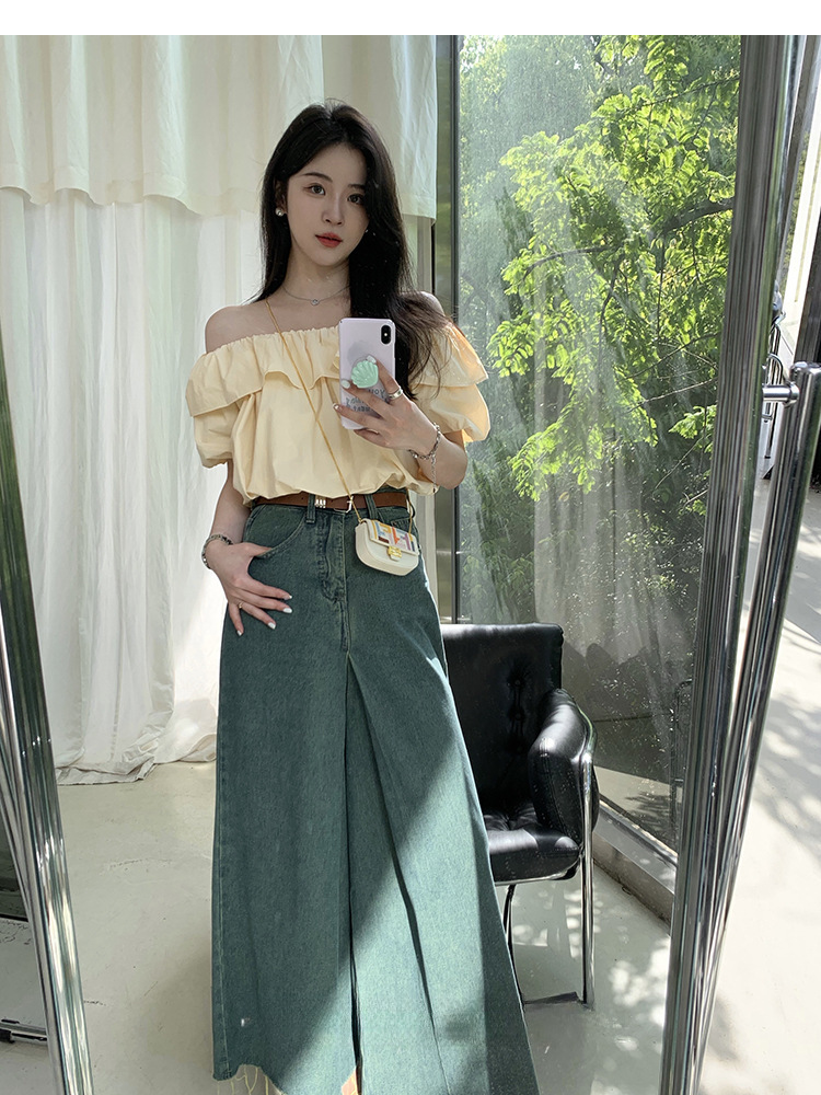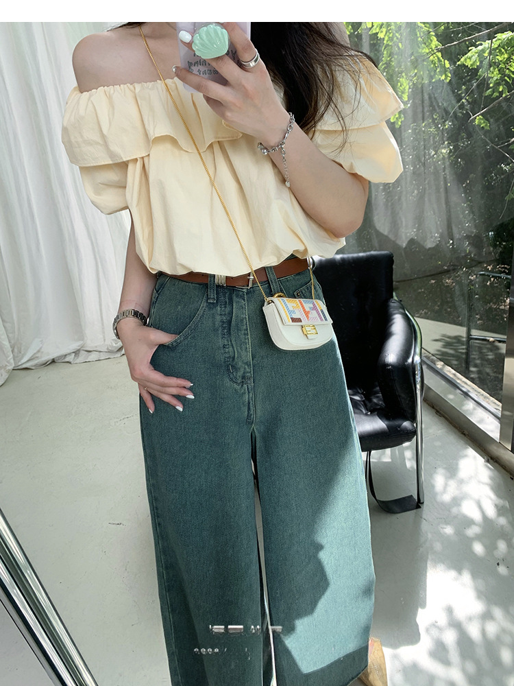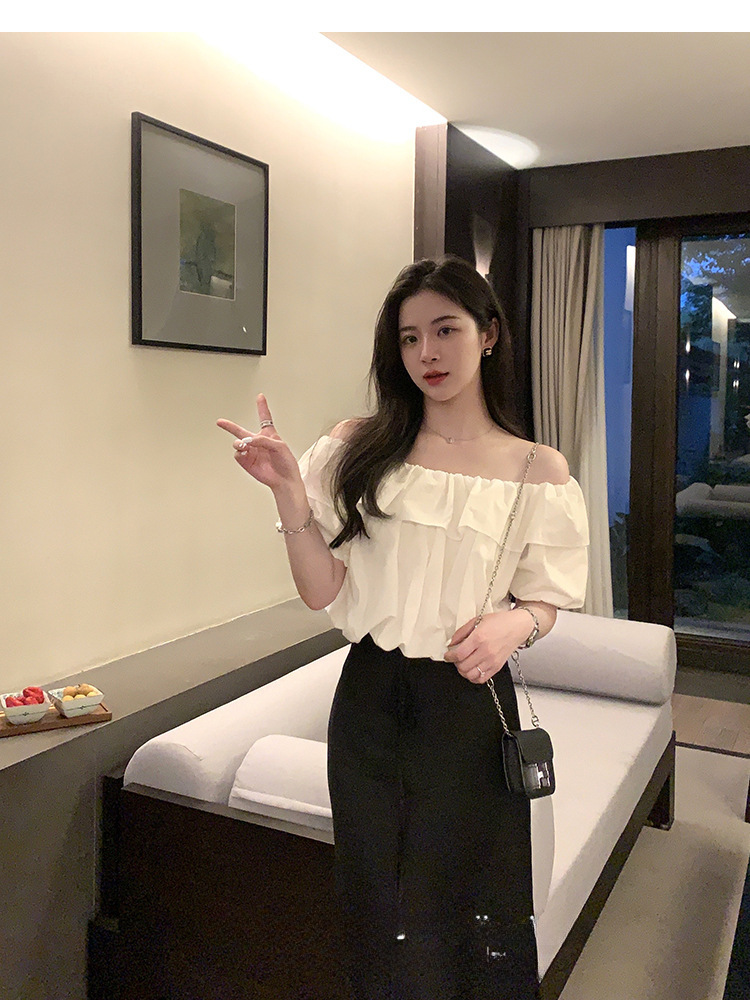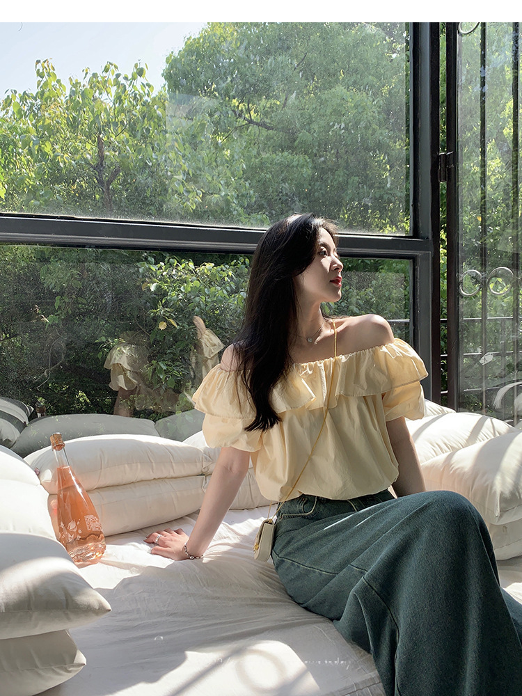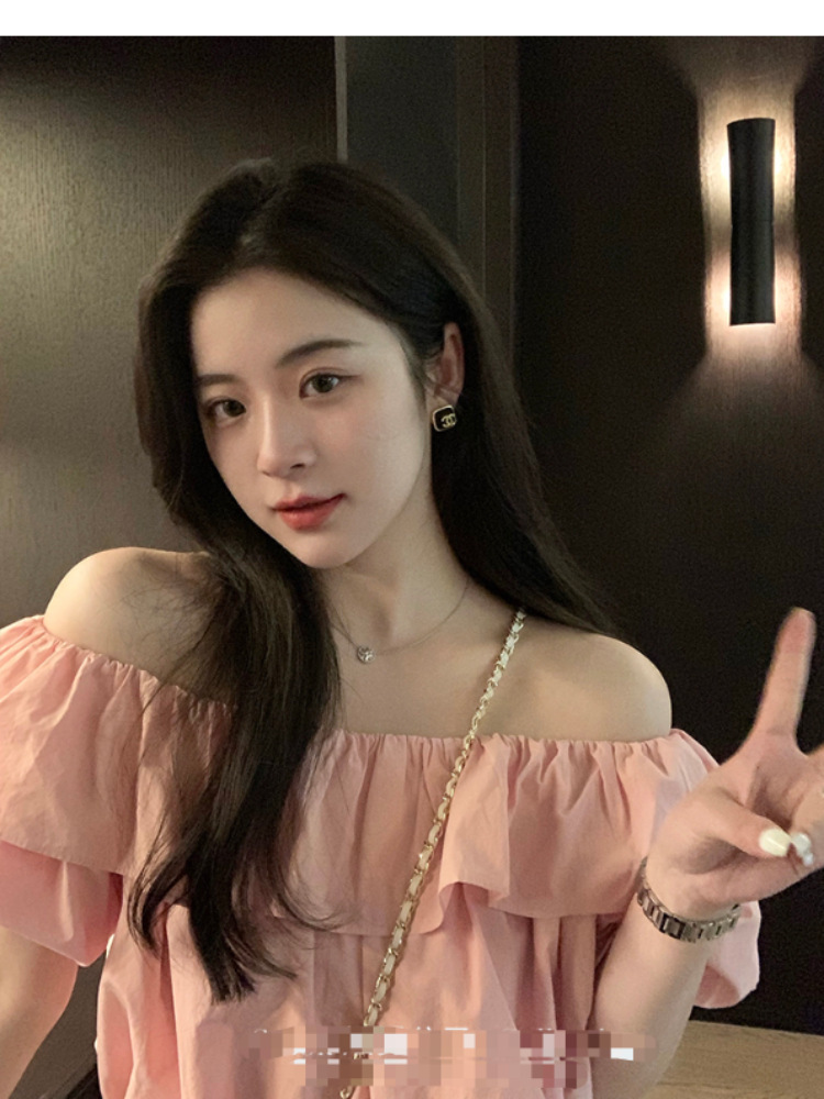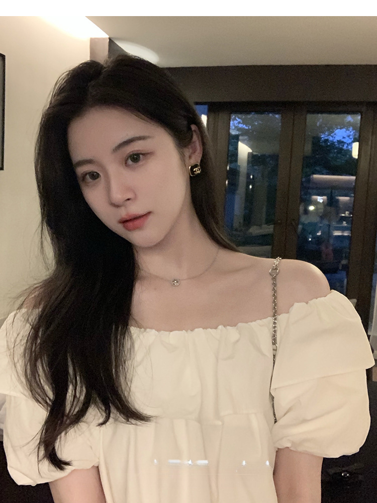 여성을위한 프랑스 복고풍 단색 반팔 핫 소녀 셔츠 여름 한국 스타일 셔츠 쉬폰 원 숄더 짧은 탑 여성 의류스토어 가기