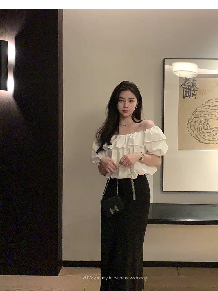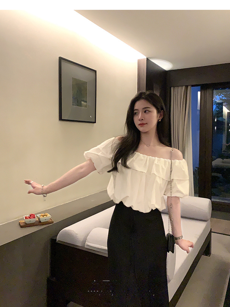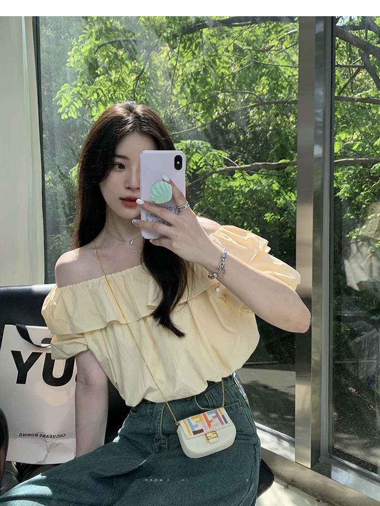 여성을위한 프랑스 복고풍 단색 반팔 핫 소녀 셔츠 여름 한국 스타일 셔츠 쉬폰 원 숄더 짧은 탑 여성 의류
