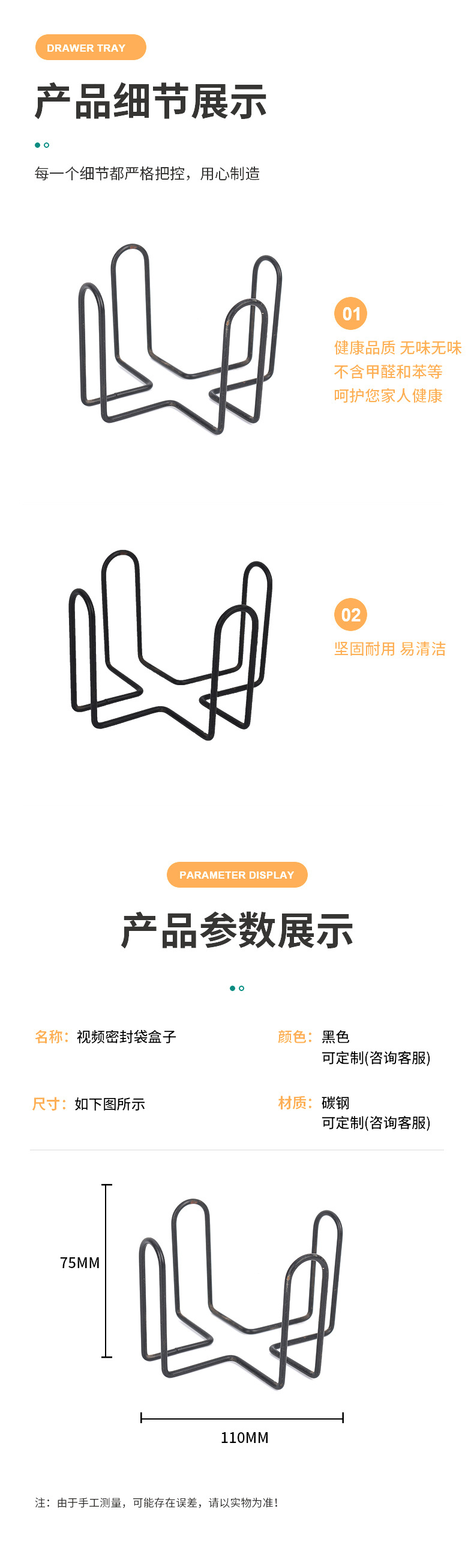 서랍 칸막이 주방 수납 선반 철제 수납장 카이셩 탄소강 바닥형 유럽식 블랙