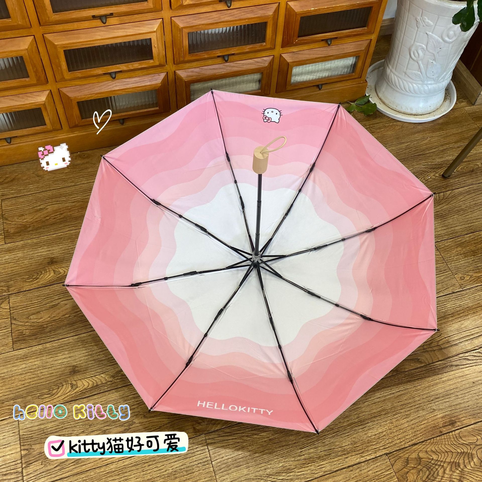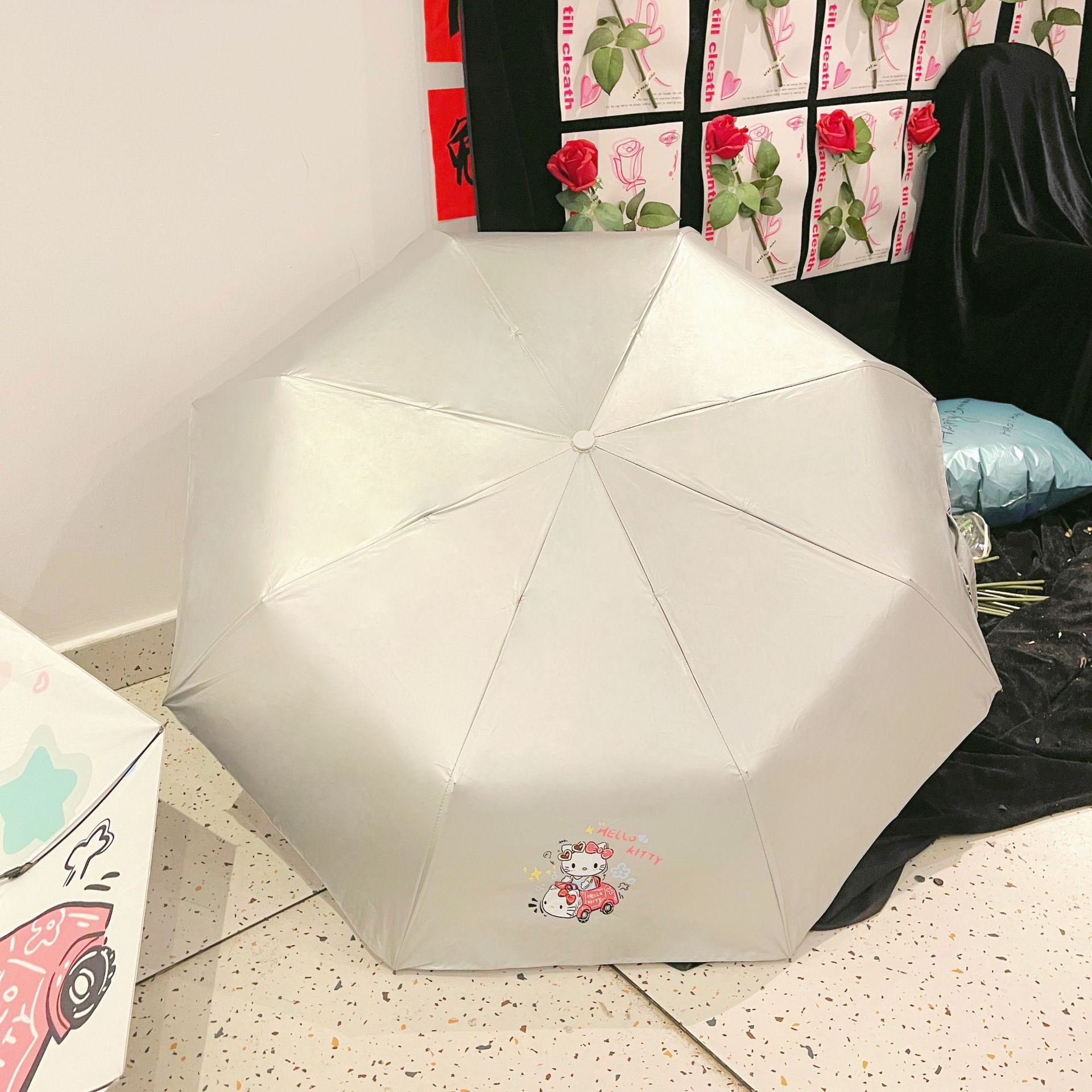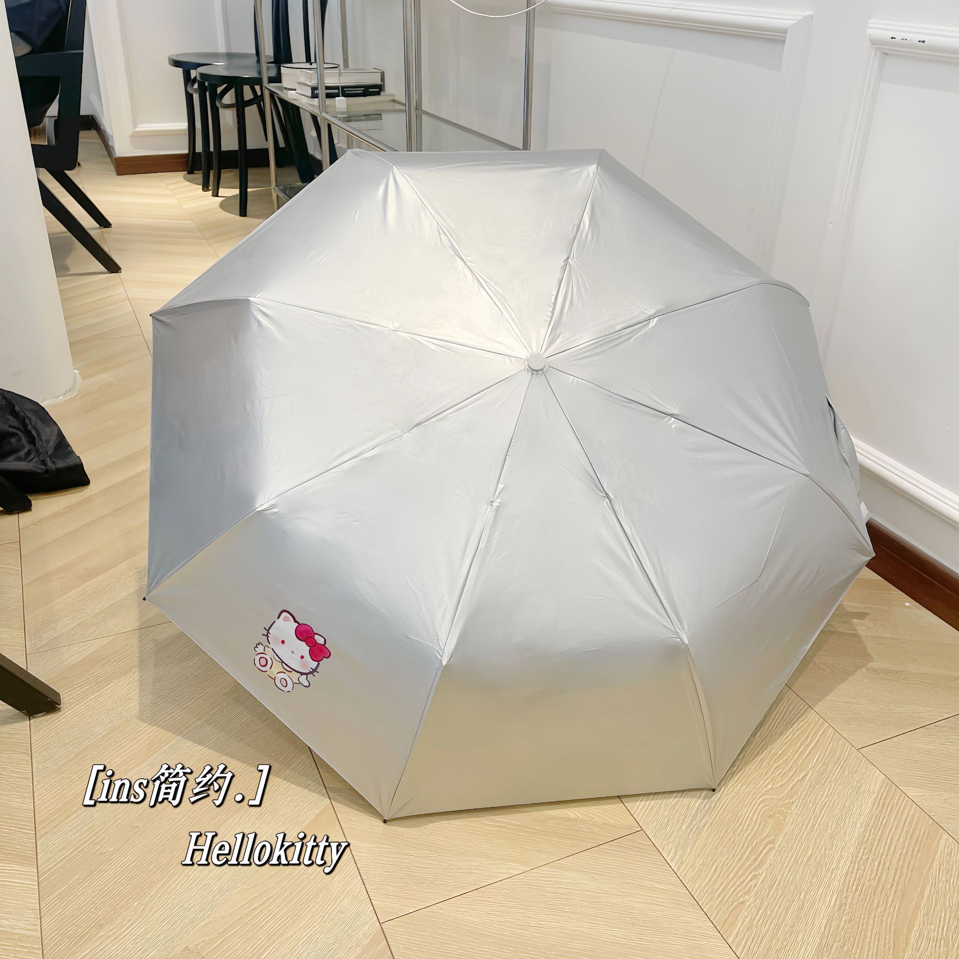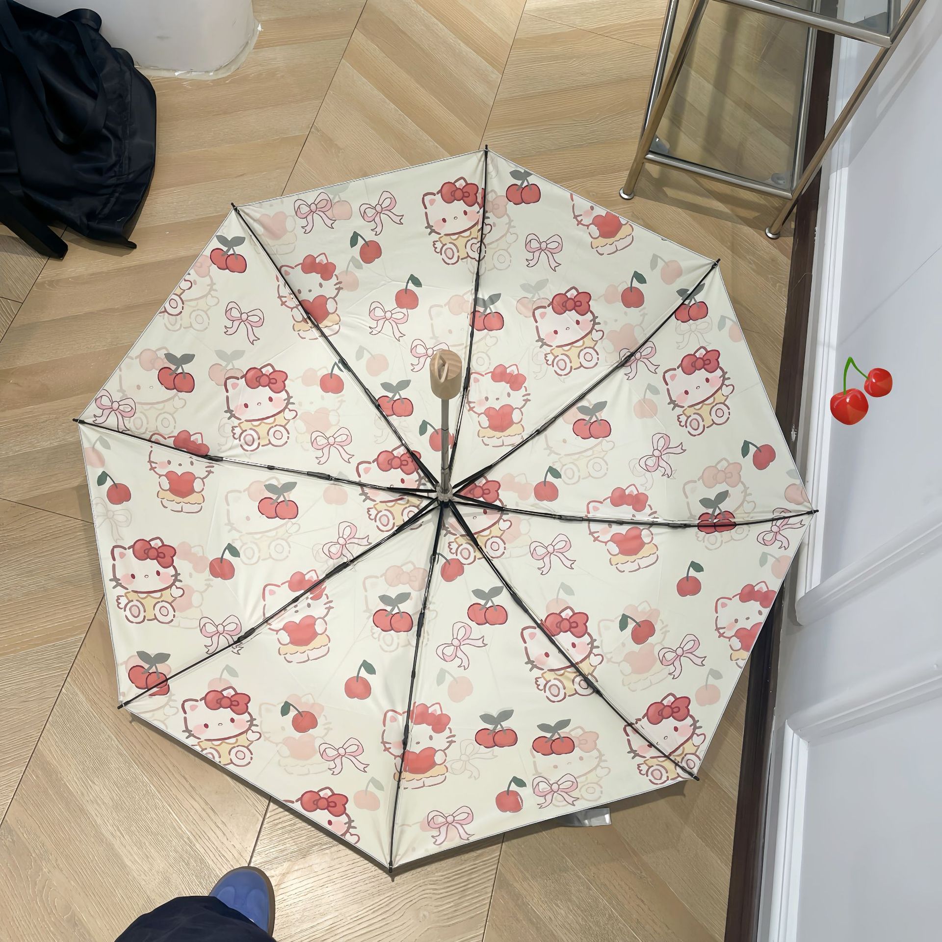 • 티타늄 실버 체리 헬로 키티 수동 파라솔