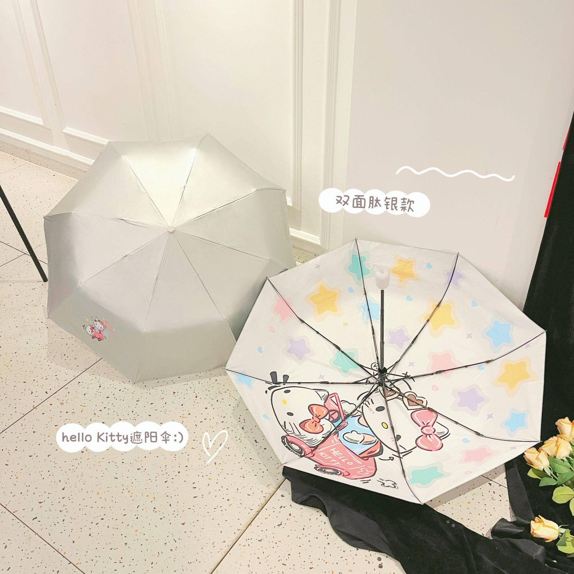 • 티타늄 실버 헬로 키티 수동 차양-검은 접착제 두껍게