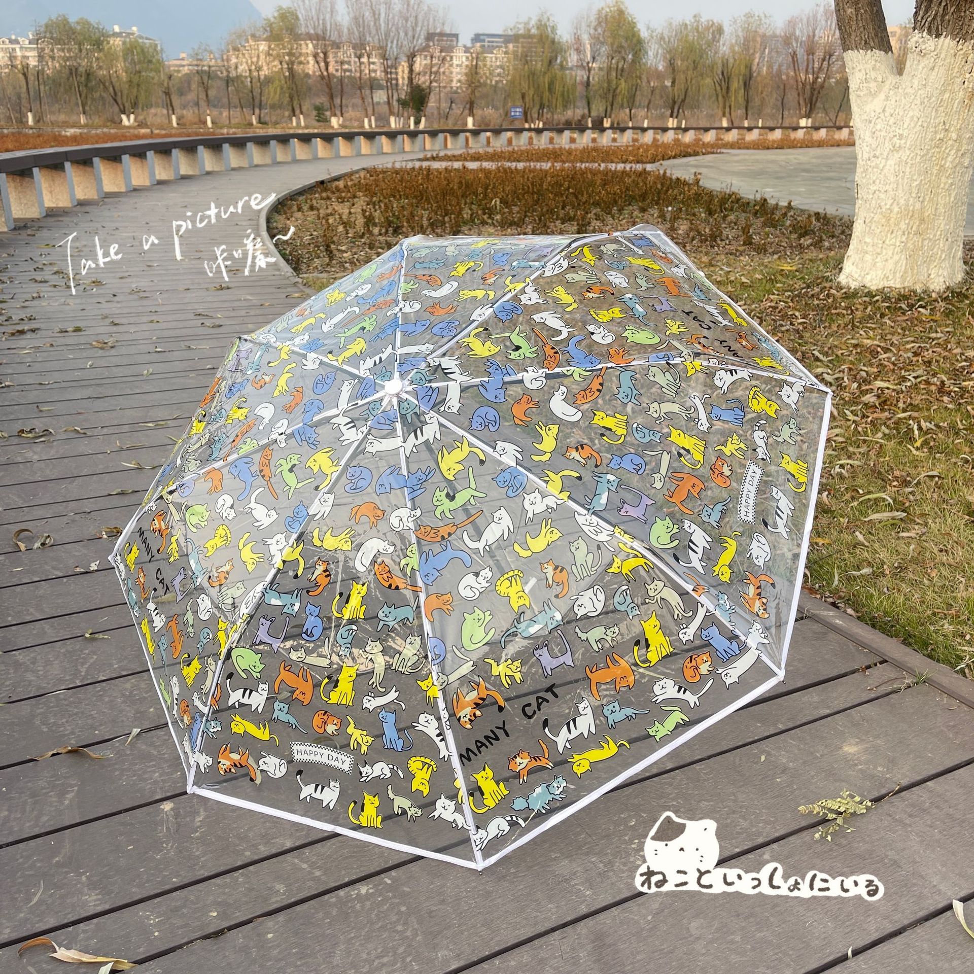 • 컬러 고양이와 개 긴 손잡이 우산-우산 표면 두껍게