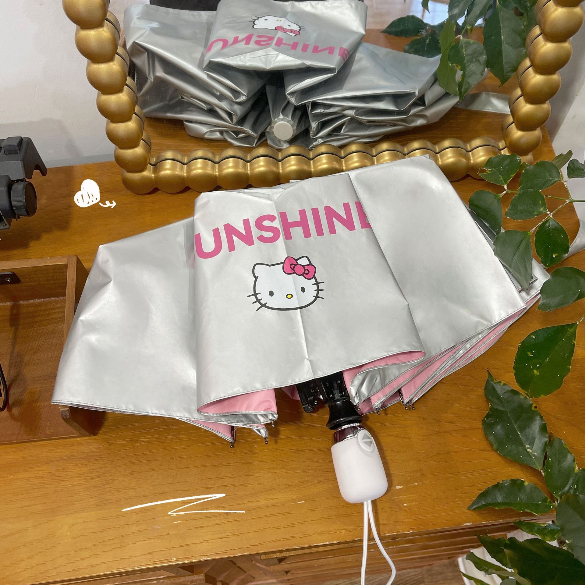 • 티타늄 실버 체리 헬로 키티 자동 파라솔