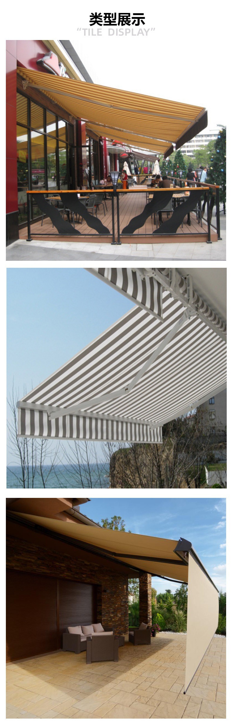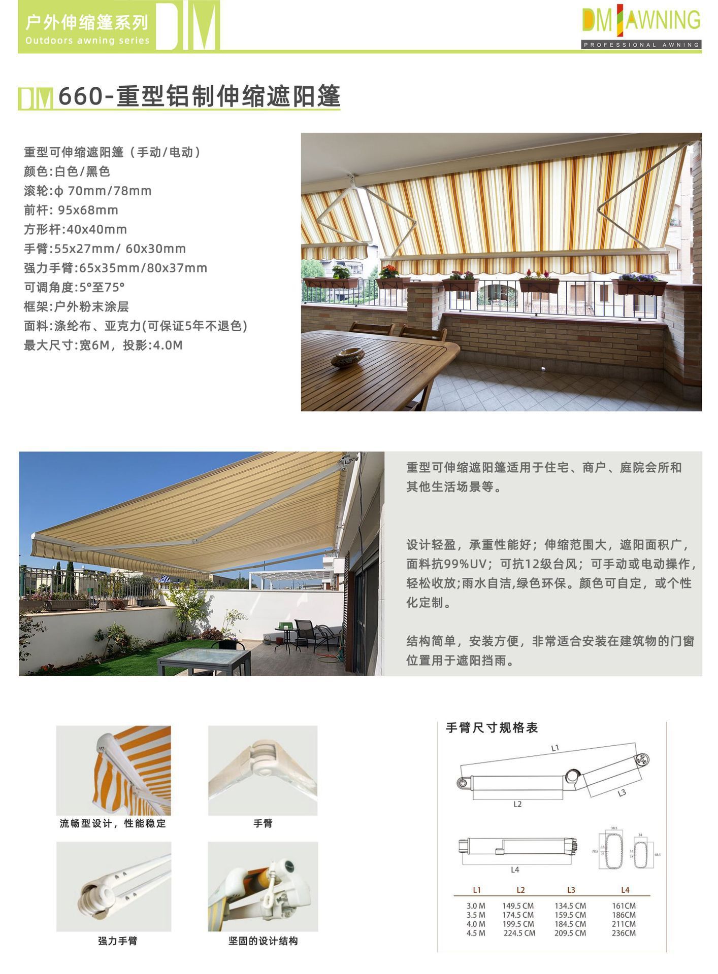 개폐식 캐노피 핸드 크랭크 팔 차양 비 방지 태양 캔버스 개폐식 캐노피 야외 음영