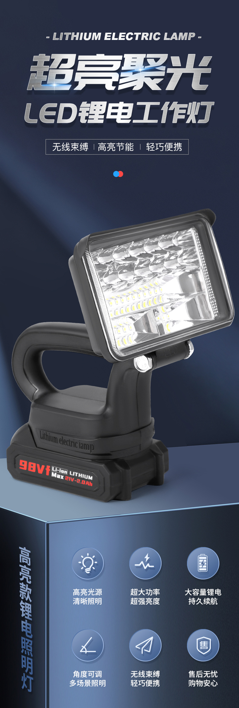 휴대용 고휘도 LED 리튬 배터리 램프, 충전식 조명등, 리튬 배터리 작업등, 자동차 수리등, 비상등, 초고휘도