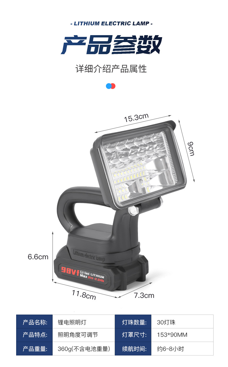 휴대용 고휘도 LED 리튬 배터리 램프, 충전식 조명등, 리튬 배터리 작업등, 자동차 수리등, 비상등, 초고휘도스토어 가기