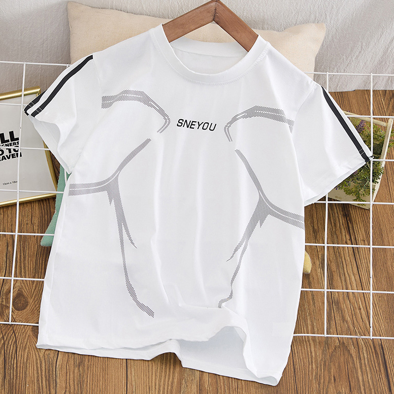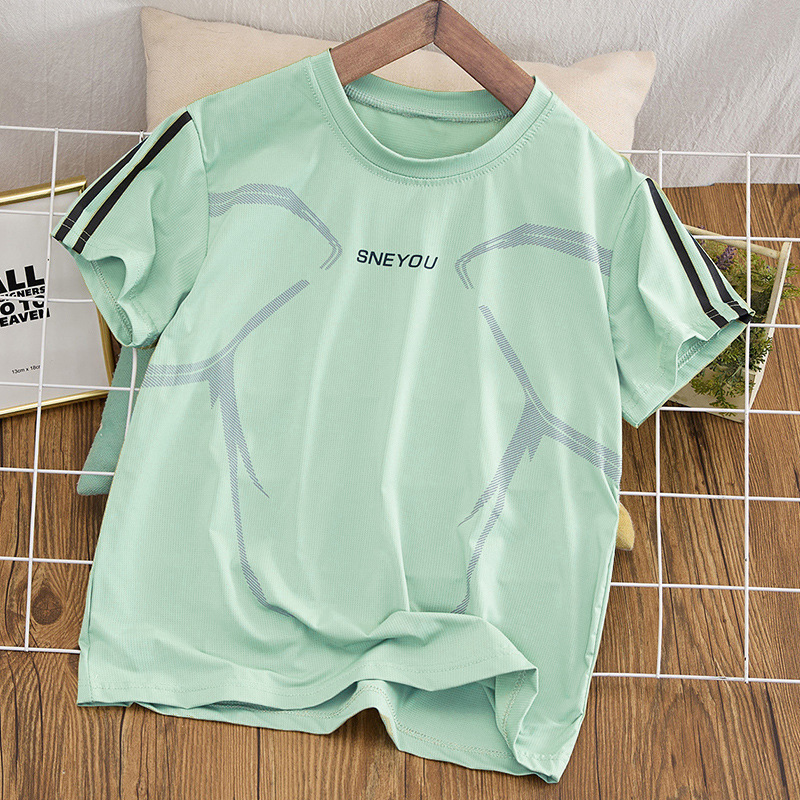 소년 여름 속건성 얼음 실크 반팔 2025 새로운 중대형 아동용 느슨한 티셔츠 소년 통기성 탑 얇은 스타일 유행스토어 가기