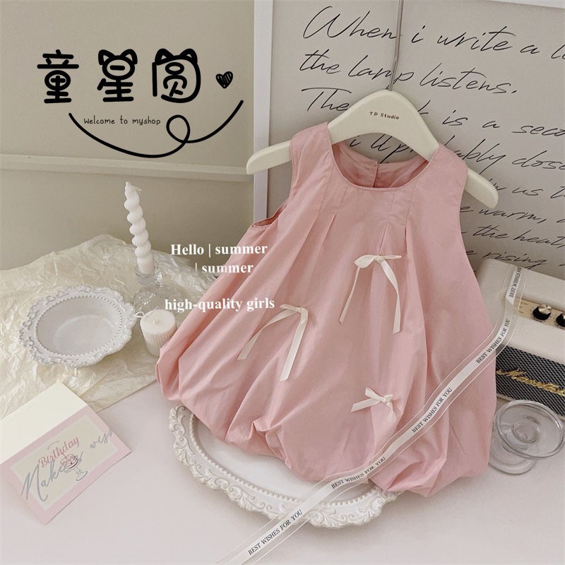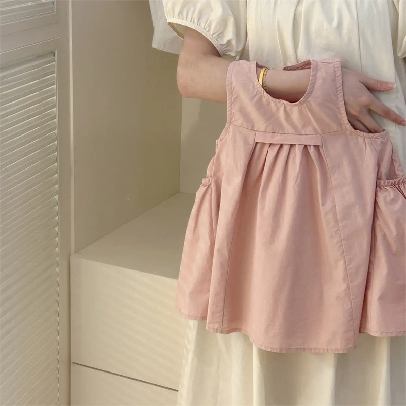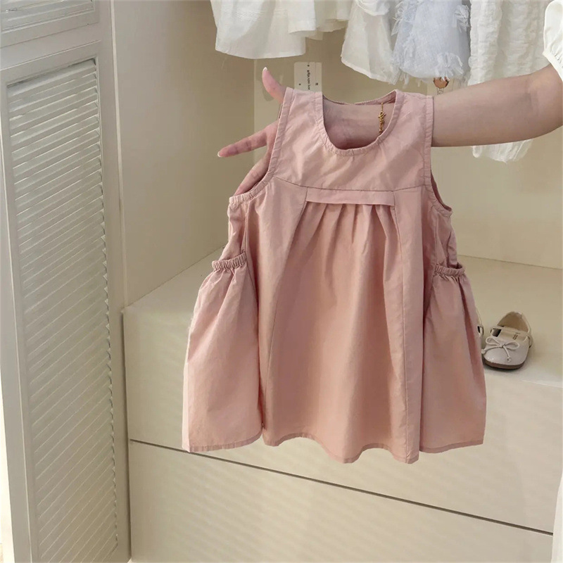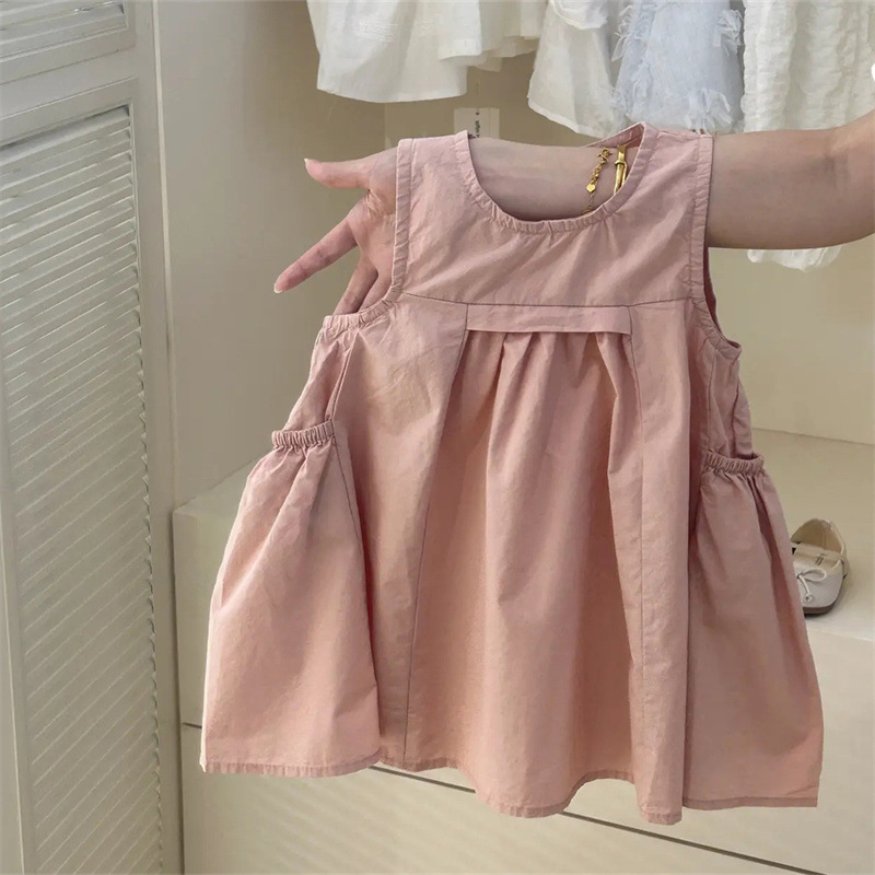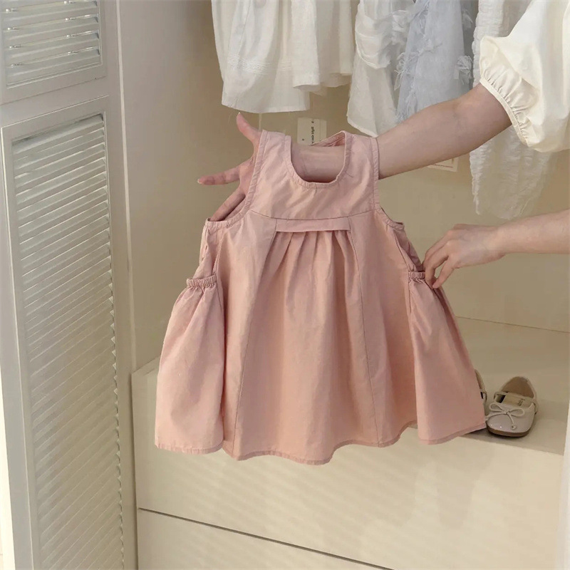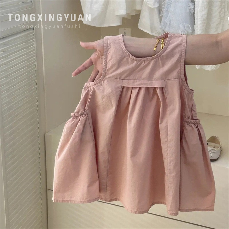 Tong Xingyuan 여자 원피스 어린이 한국 스타일 공주 치마 얇은 2024 여름 새로운 아기 솔리드 컬러 트렌디 스커트스토어 가기