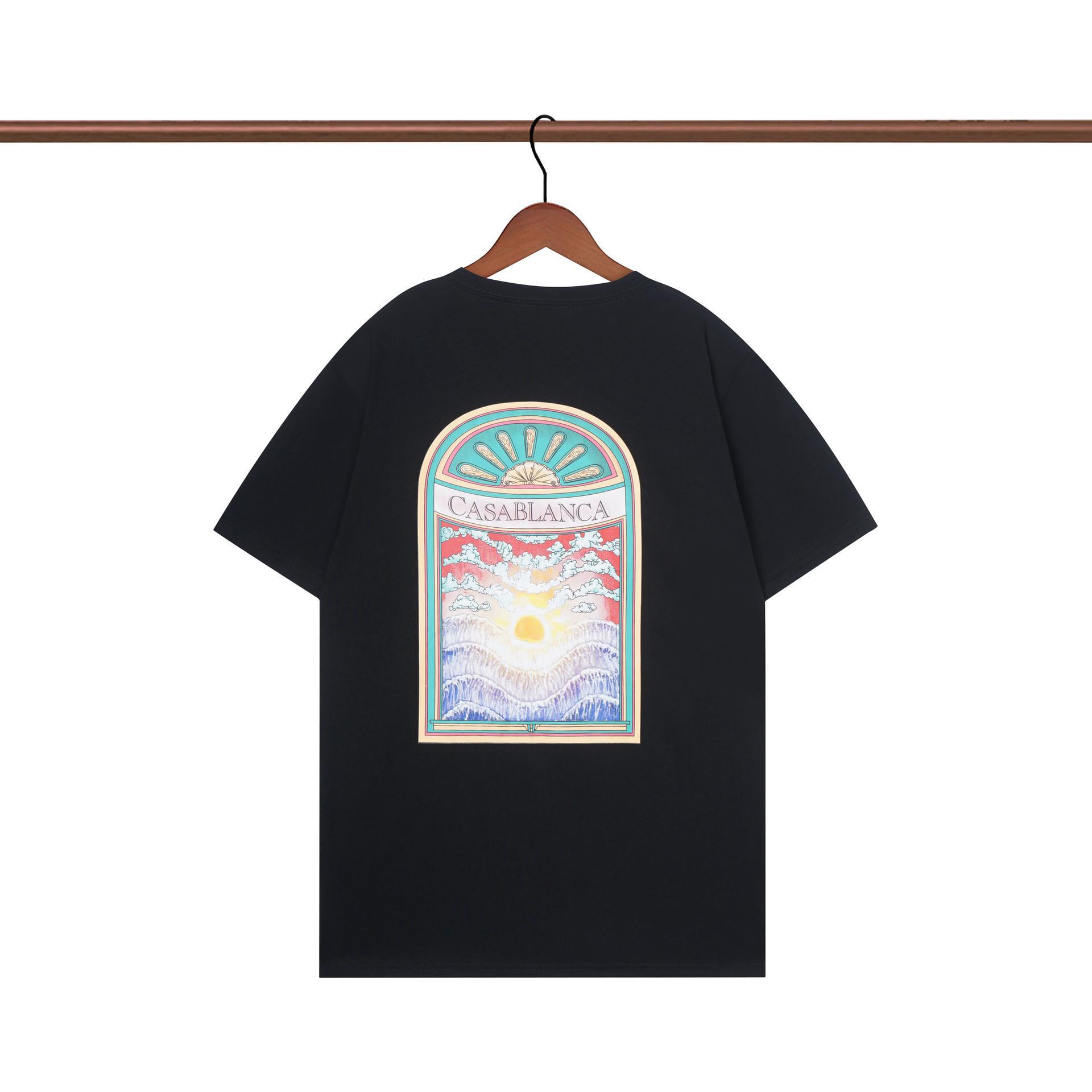 틈새 유행 카사 블랑카 반팔 여름 새로운 다채로운 크레인 편지 로고 인쇄 라운드 넥 티셔츠스토어 가기