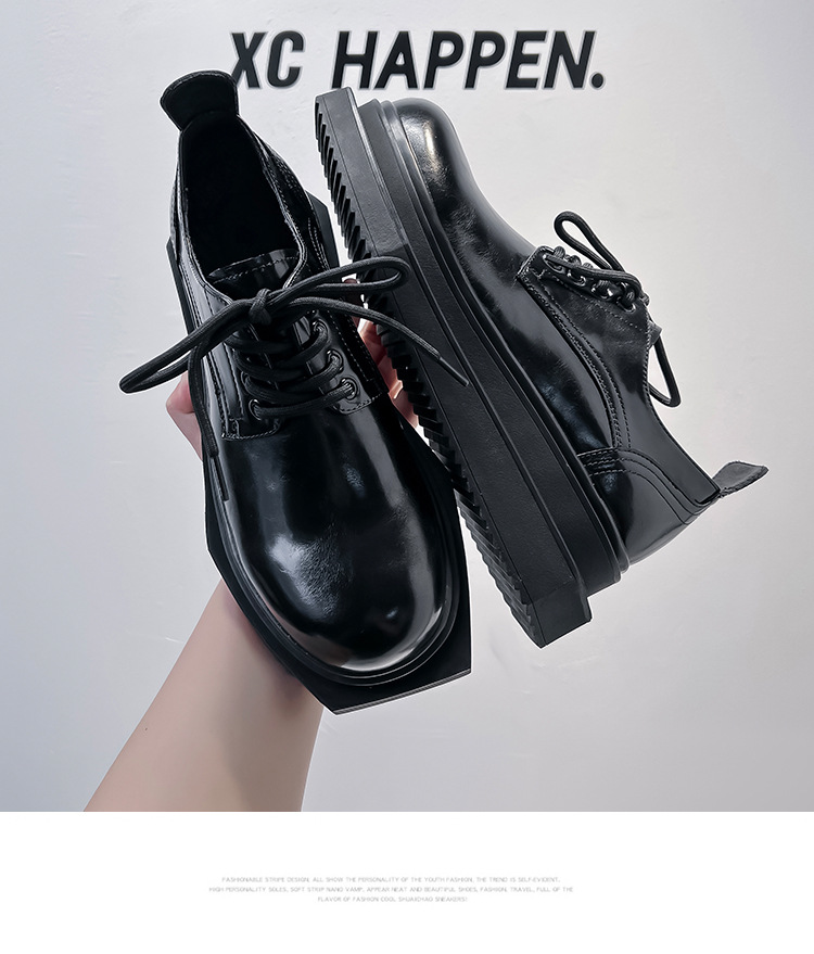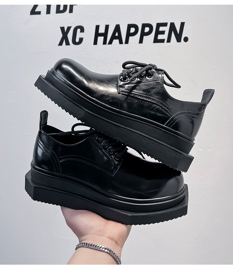 한국 스타일 Ins 라운드 발가락 가죽 신발 틈새 플랫폼 하단 더비 신발 영국 스타일 캐주얼 올 매치 트렌디 신발 하이 엔드 남성 신발스토어 가기