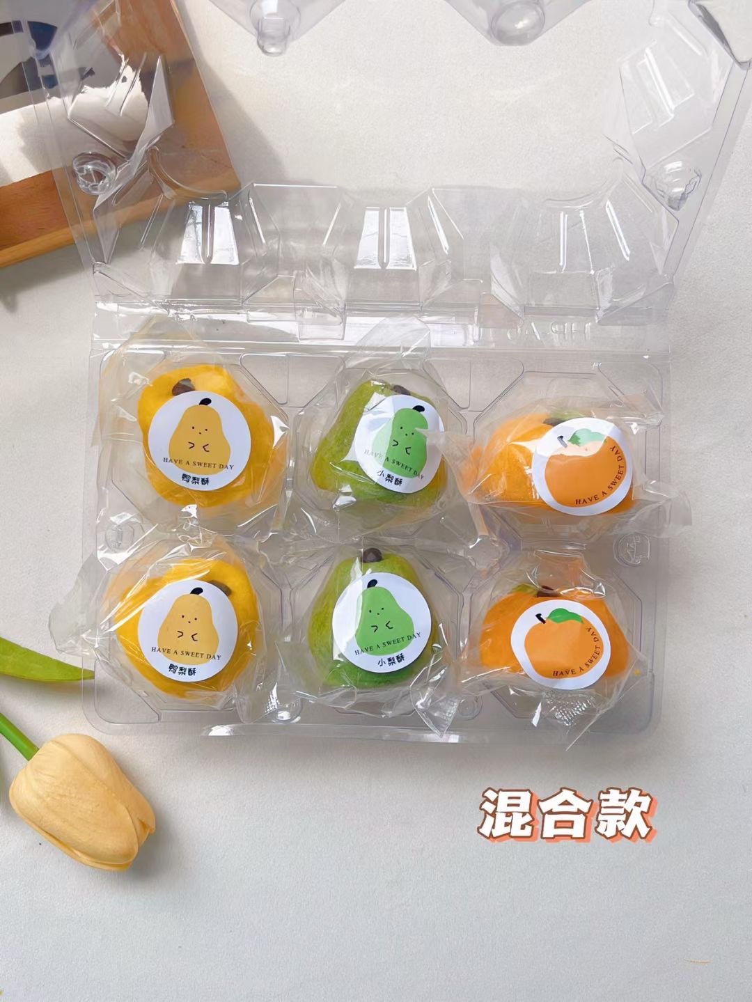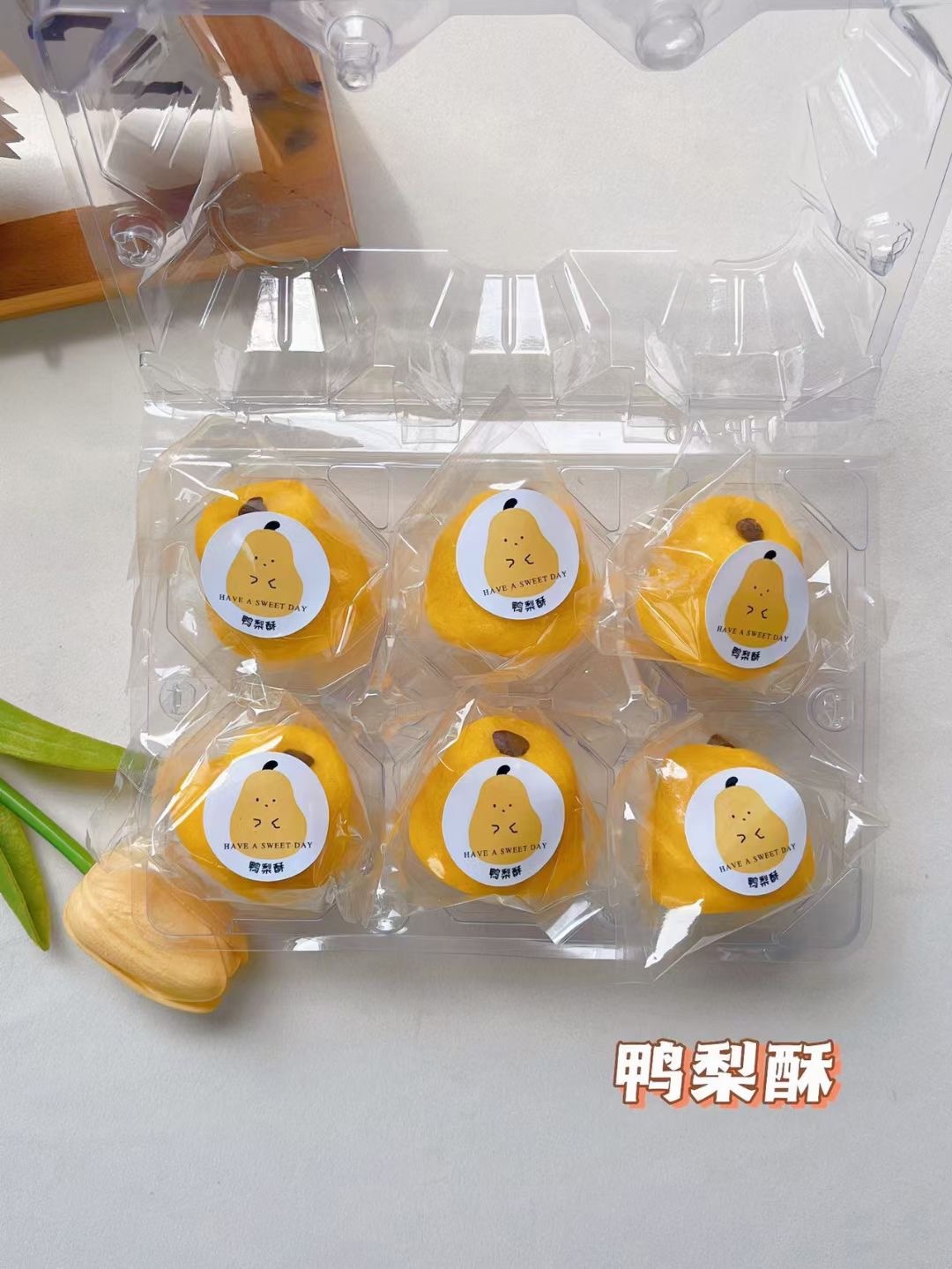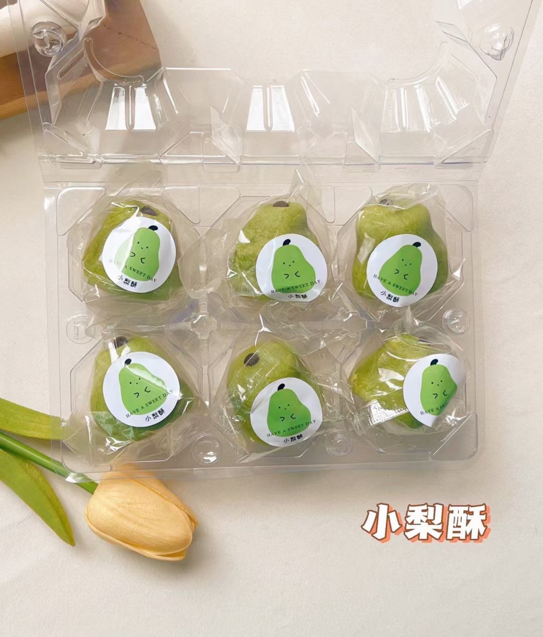 • 새로운 중국 파인애플 케이크 (녹색 배 6 팩) 투명 상자
