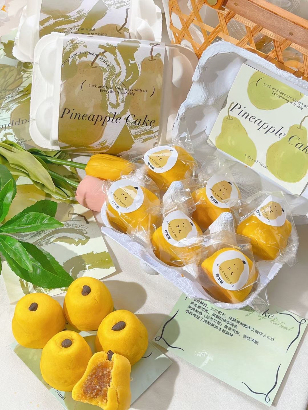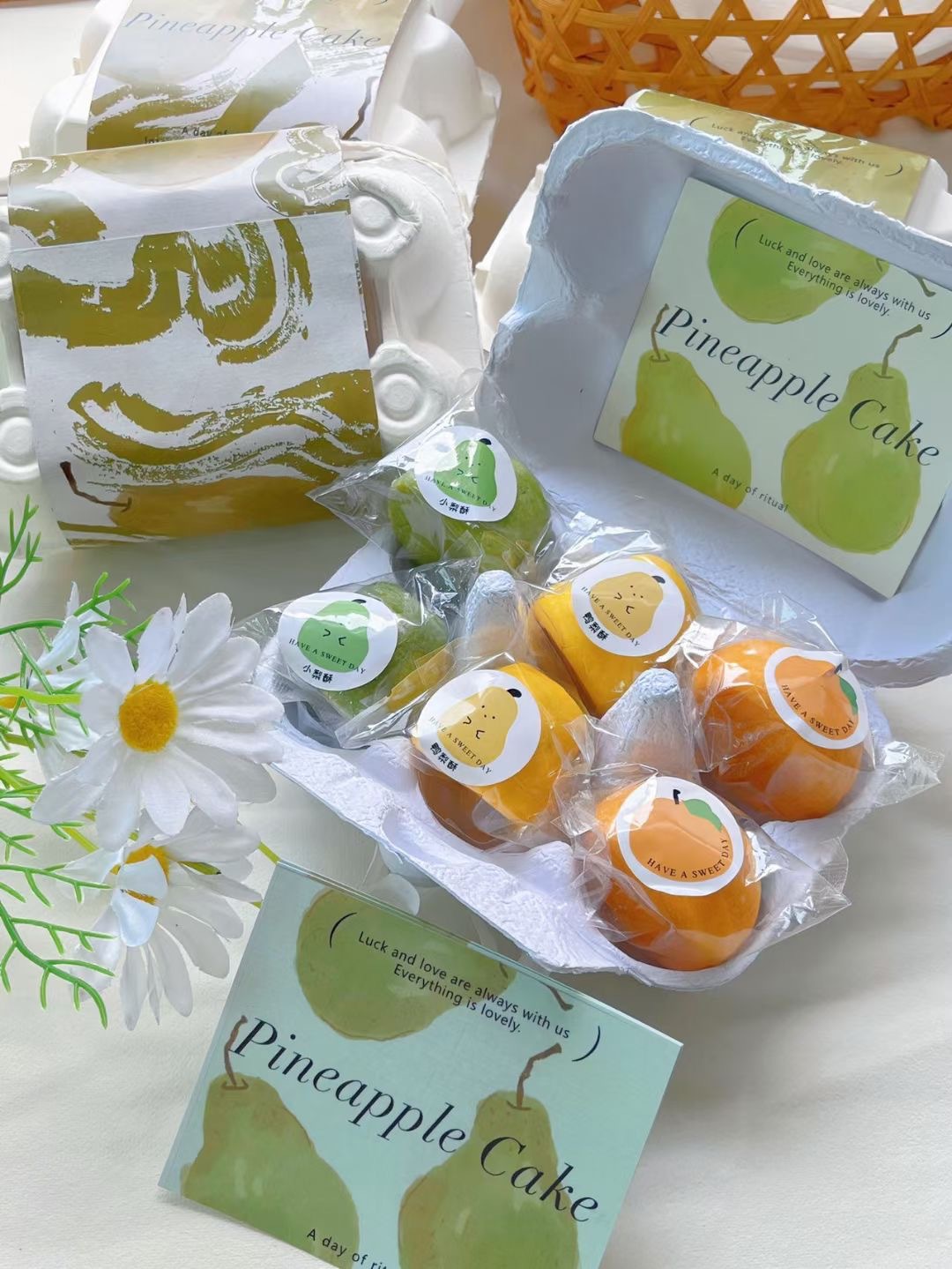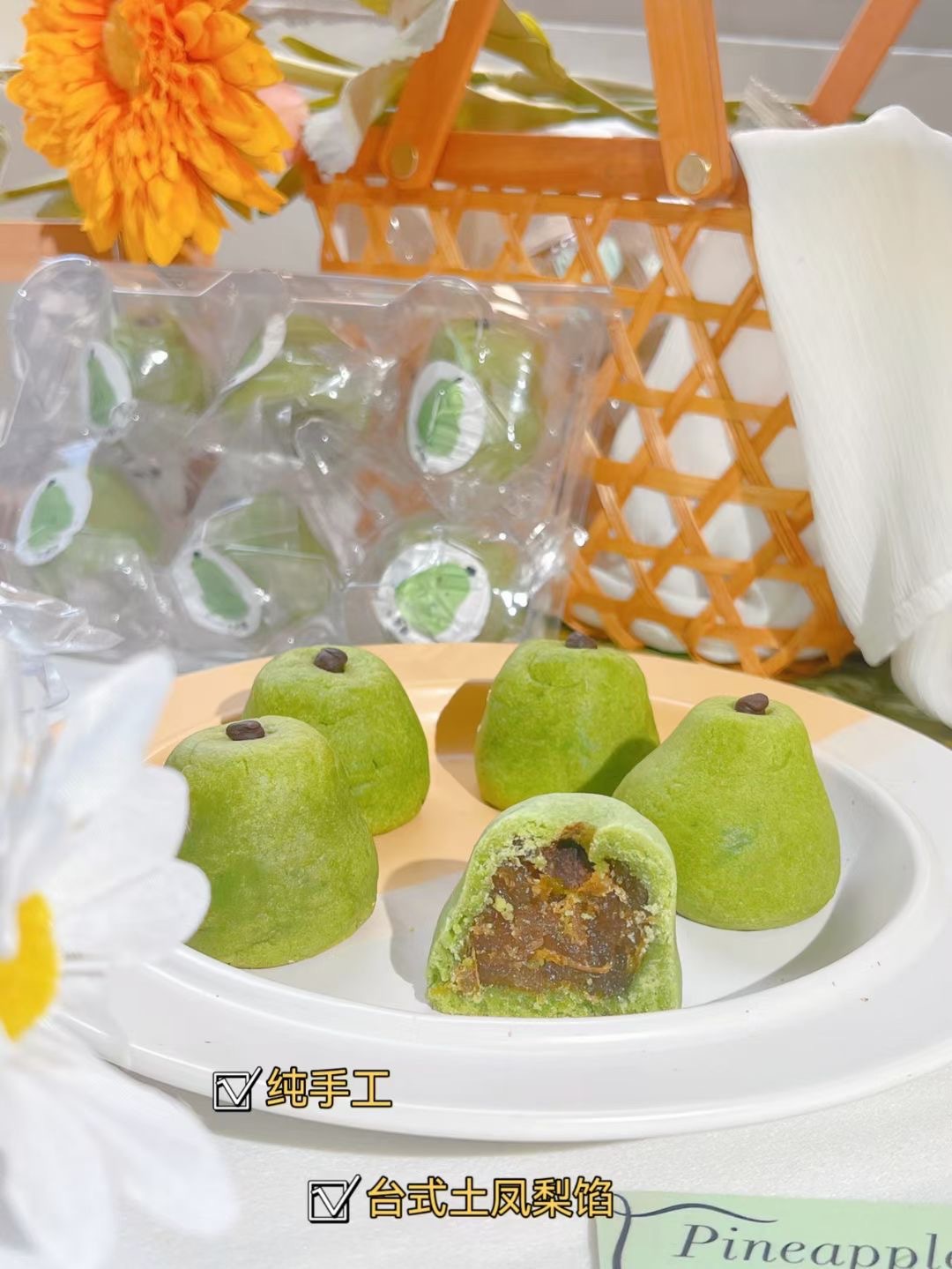 • 새로운 중국 파인애플 케이크 (녹색 배 6 팩) 투명 상자