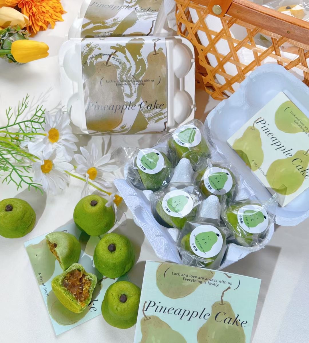 • 새로운 중국 파인애플 케이크 (녹색 배 6 팩) 흰색 상자