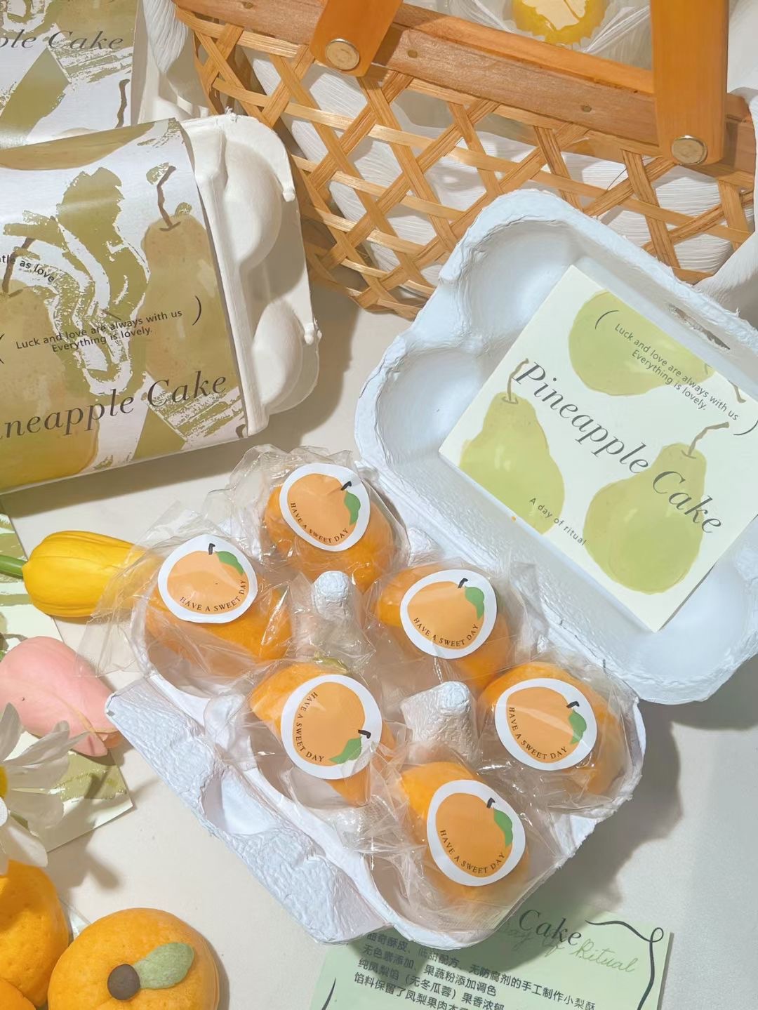 • 새로운 중국 파인애플 케이크 (6 오렌지) 화이트 박스