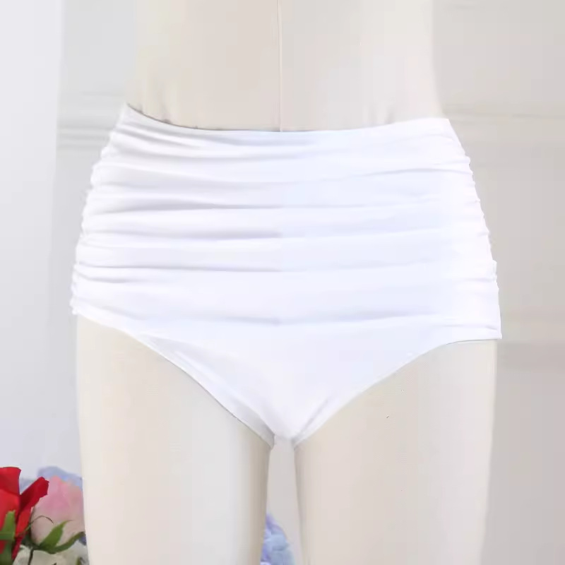 새로운 싱글 여성 높은 허리 배꼽 커버 슬림 삼각형 수영 트렁크 빠른 건조 비키니 올 매치 플리츠 수영 트렁크 여자 멀티 컬러