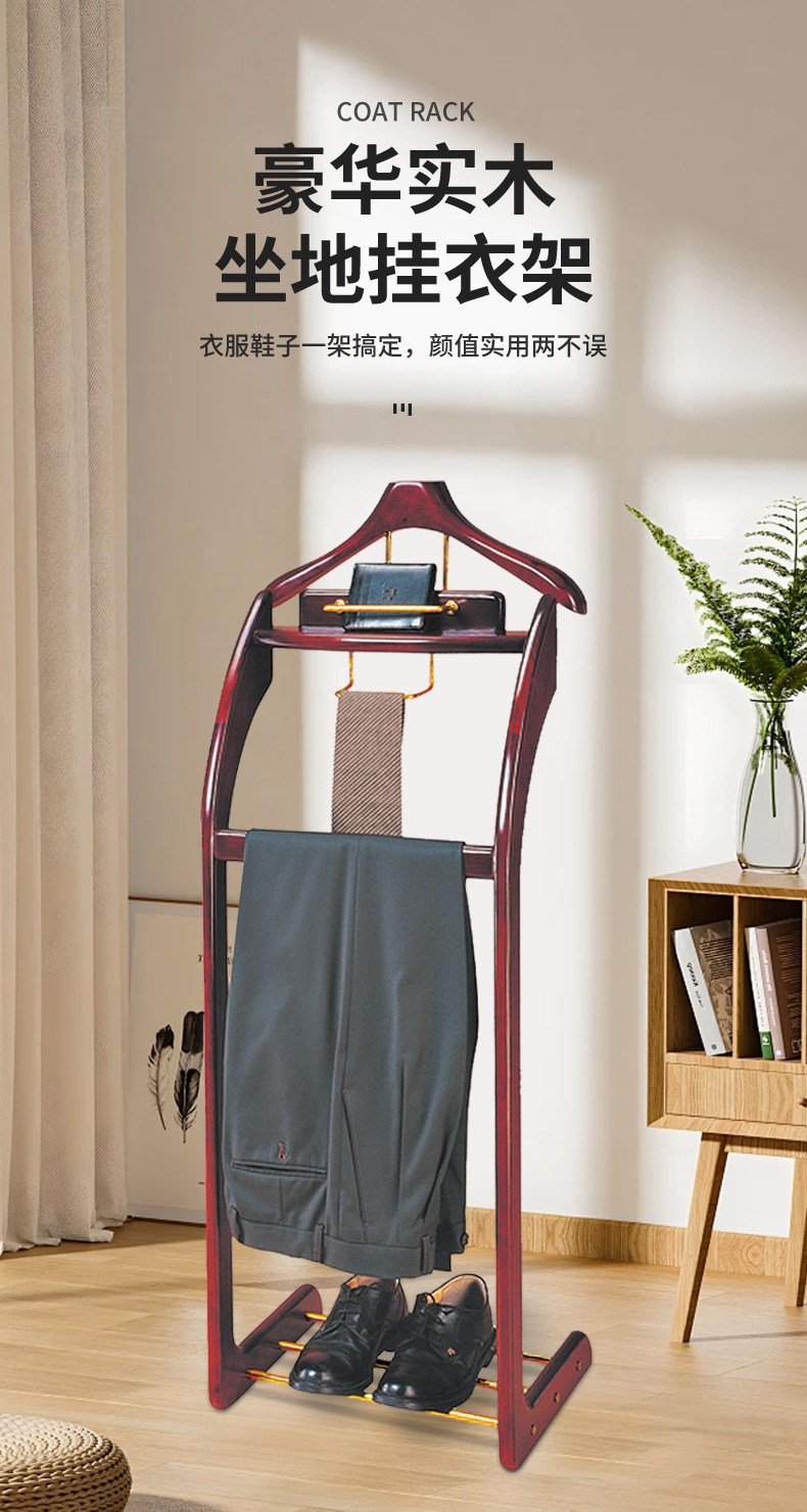 고급 홈 침실 옷걸이 호텔 스위트 세트 바닥 코트 랙 나무 창조적 인 수직 옷걸이 사업