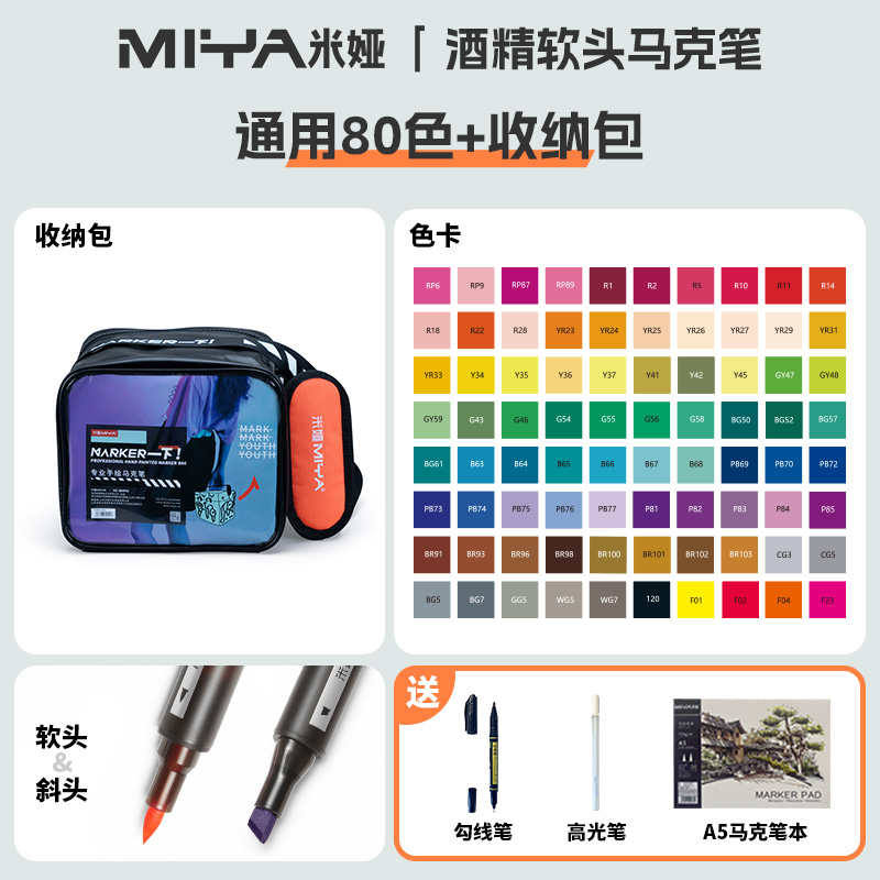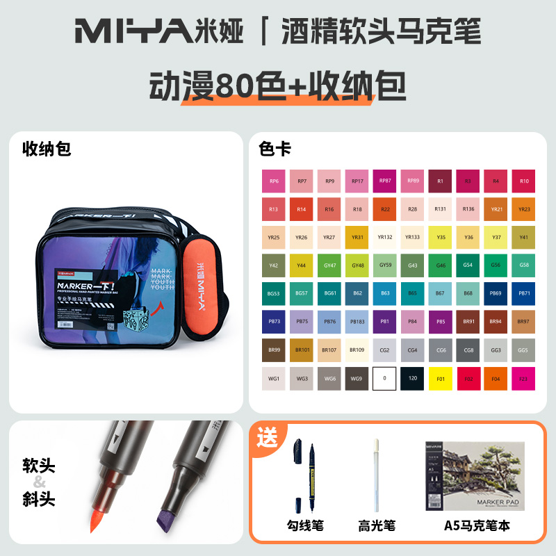 • [애니메이션 디자인 80색] 미아 알코올 마커 + 마커 보관 가방 - 기타/o