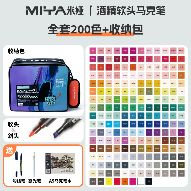 • [풀컬러 200색] 미아알코올마커+마커수납가방-기타/기타