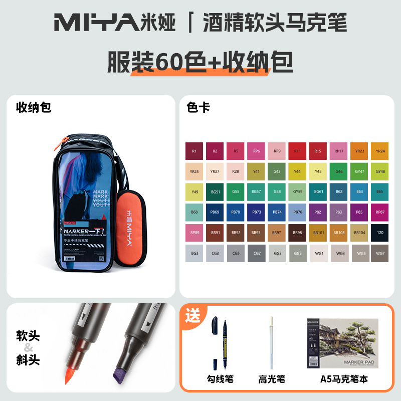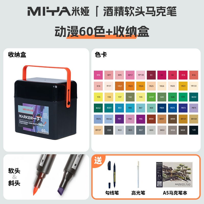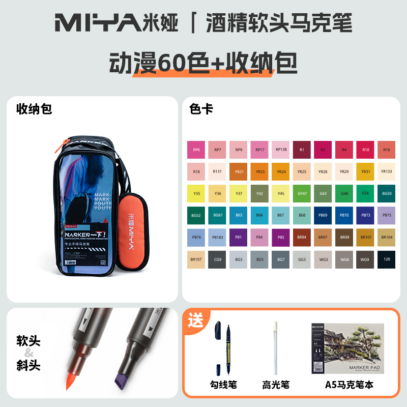 • [애니메이션 디자인 60색] 미아 알코올 마커 + 마커 보관 가방 - 기타/o